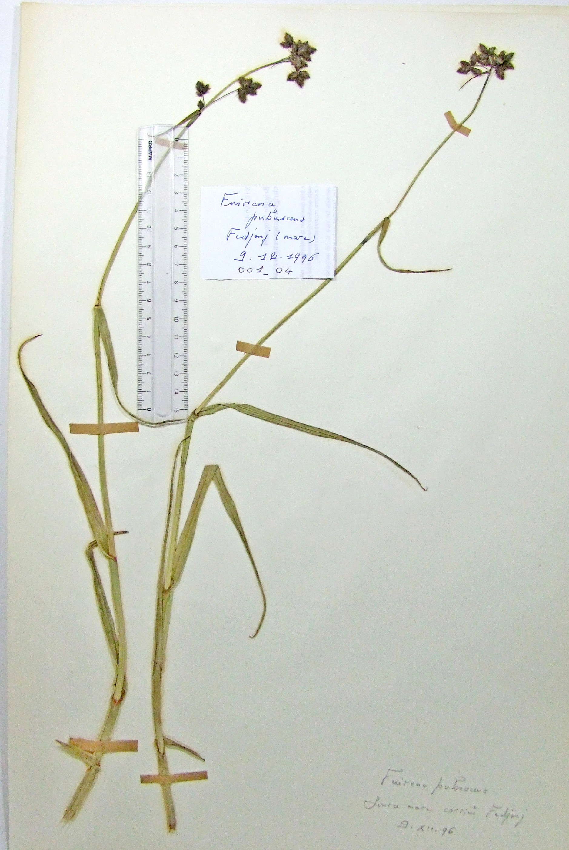 | 001_04 | Cyperaceae Fuirena pubescens (Poir.) Kunth. | x=8.249306 y=36.861389 z=92 m | mare Fedjouj El Tarf 1996-12-09 |  |