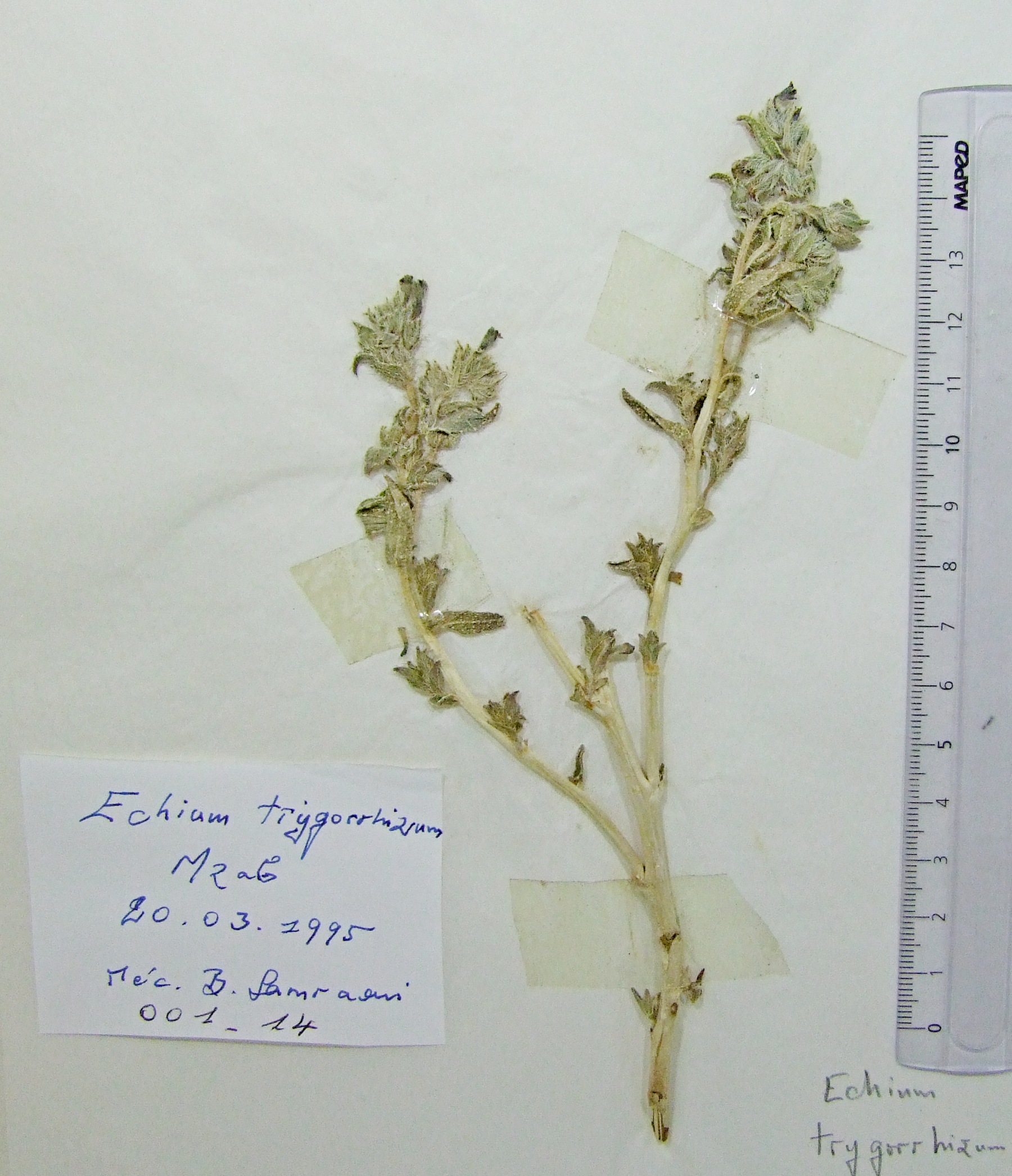 | 001_14 | Boraginaceae Echium trygorrhizum Pomel | x=3.628092 y=31.569539 z=386 m | M'zab 3 Ghardaïa 1995-03-20 |  |