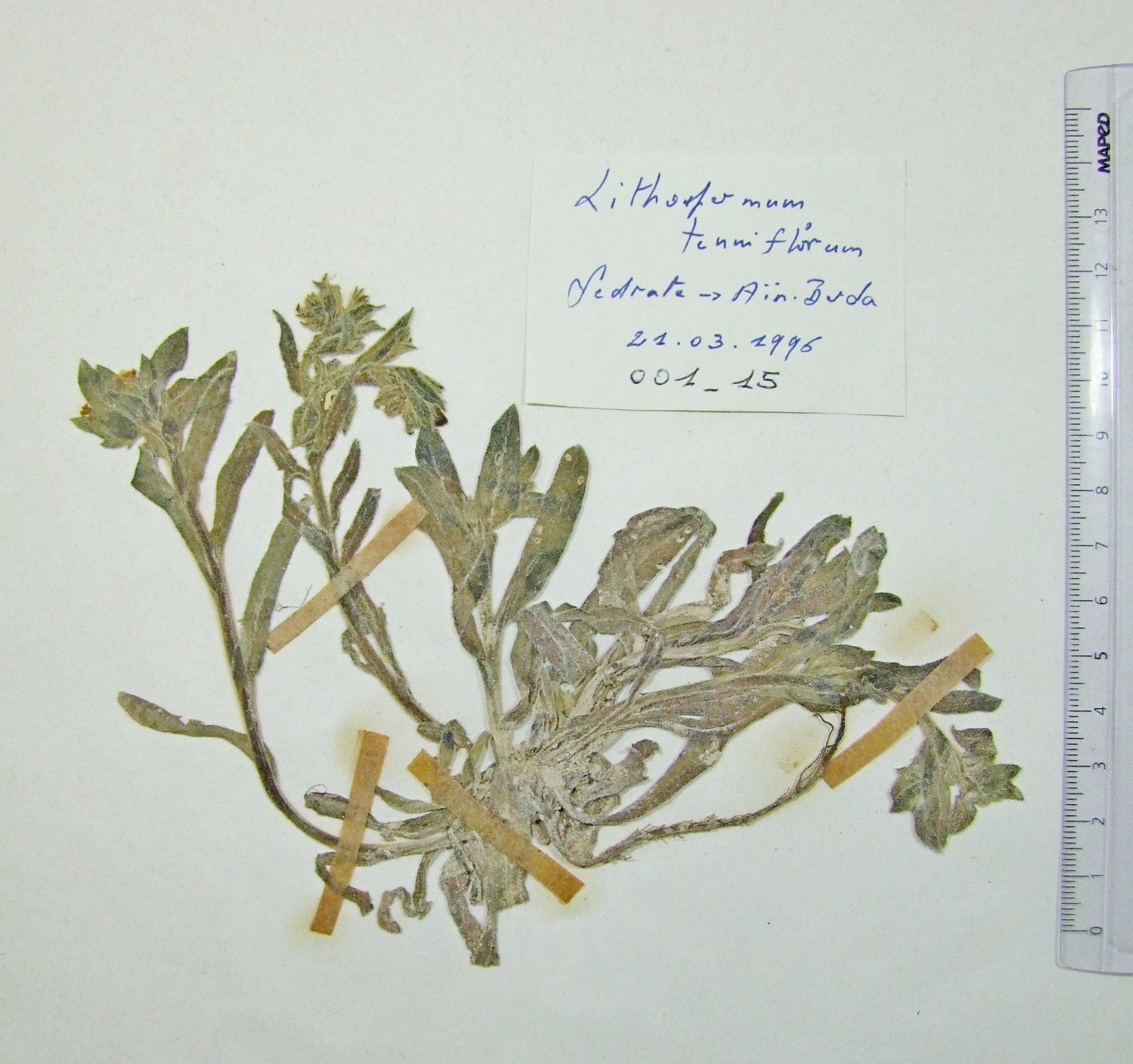 | 001_15 | Boraginaceae Lithospermum tenuiflorum L. fil. | x=7.562025 y=36.134444 z=799 m | Sedrata E Souk Ahras 1996-03-21 |  |