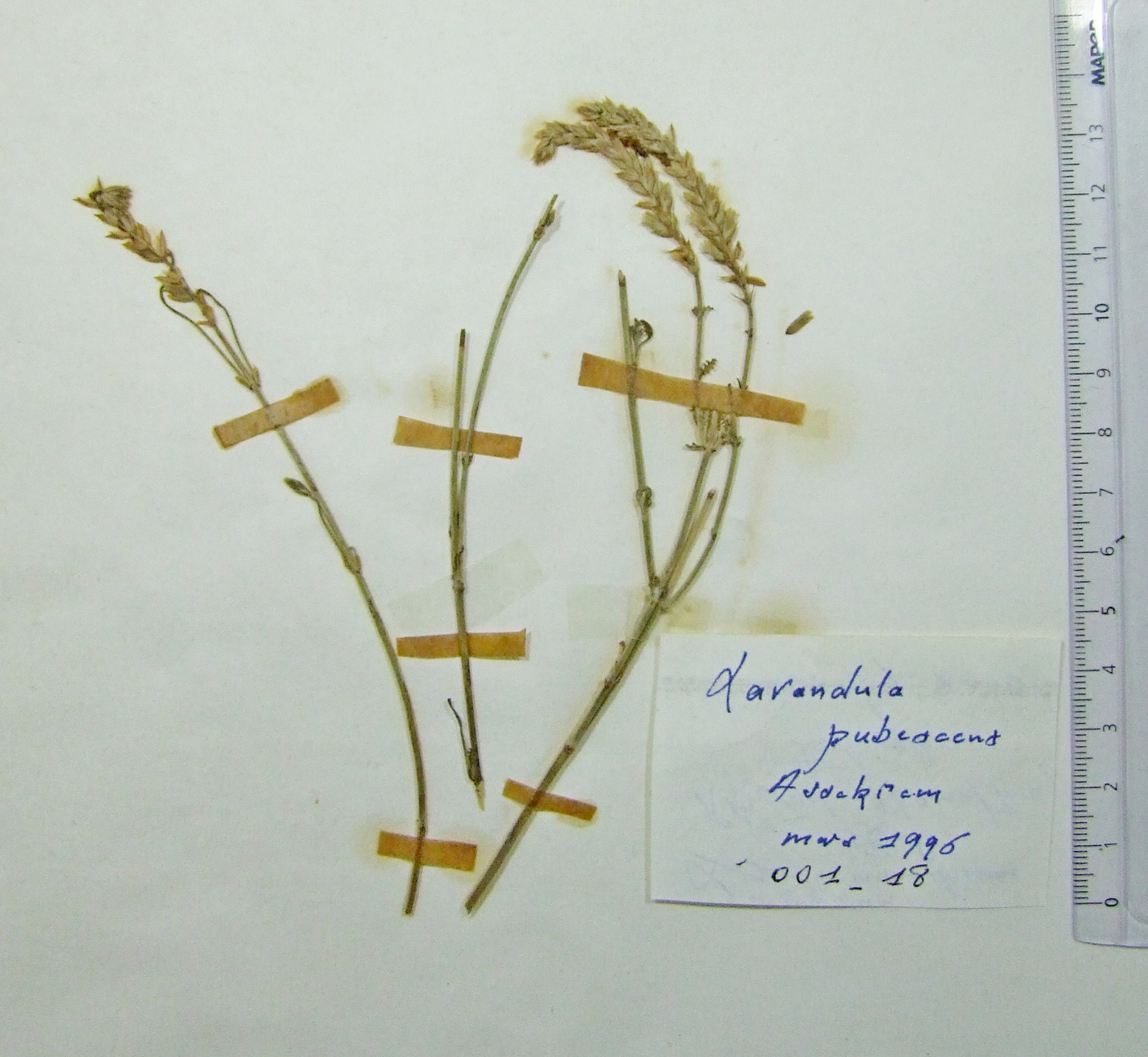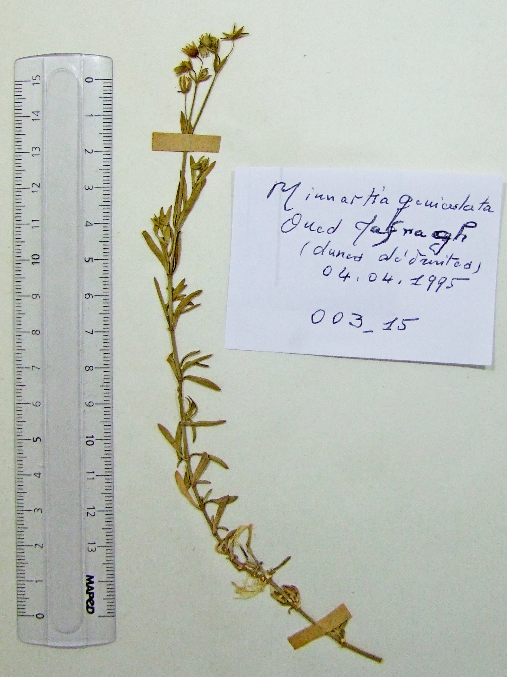 | 002_04 | Leguminosae Retama raetam (Forssk.) Webb subsp. raetam | x=3.766903 y=32.832933 z=531 m | M'zab 4 Ghardaïa 1995-03-20 | |