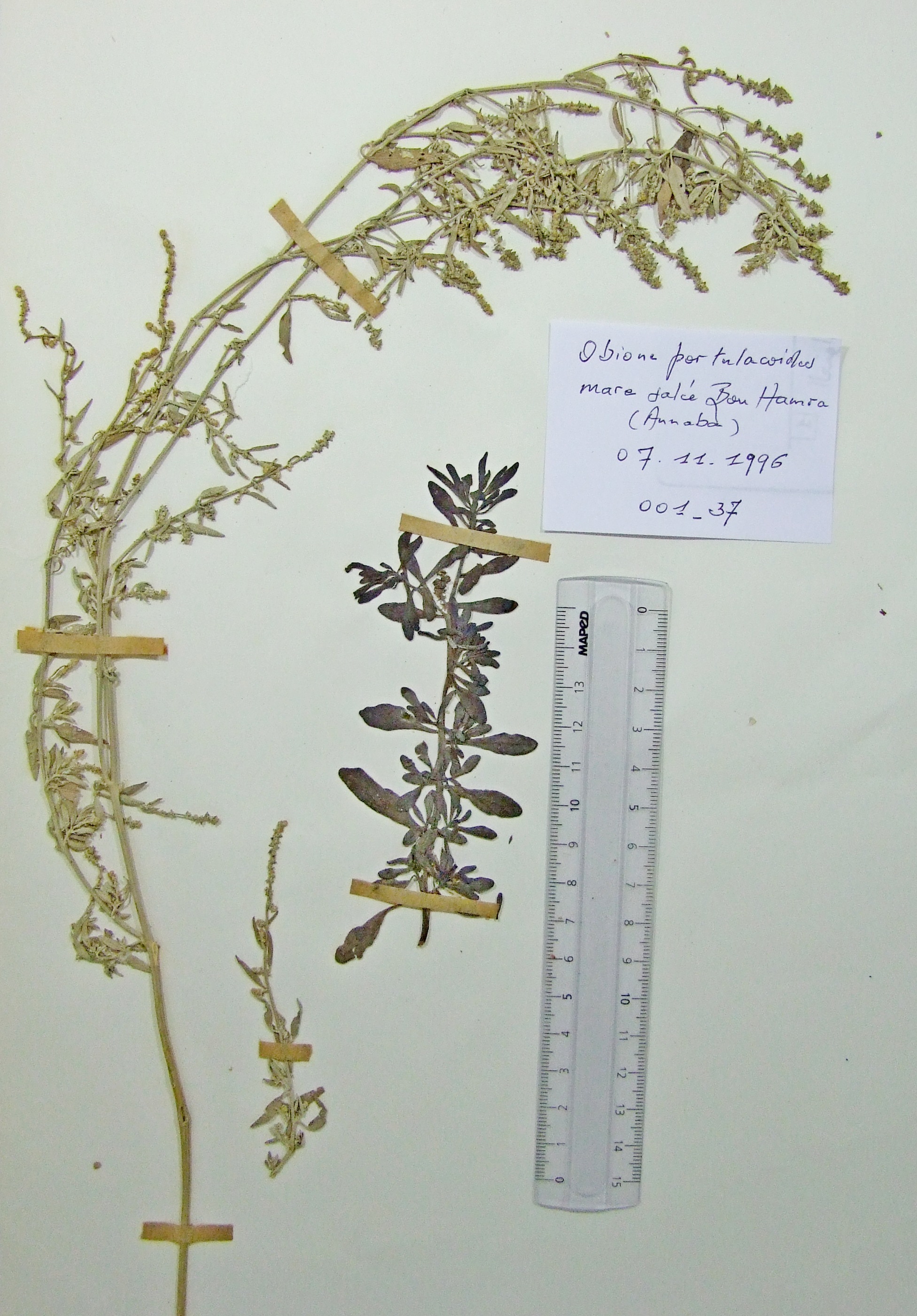 | 001_37 | Amaranthaceae Halimione portulacoides (L.) Aellen | x=7.739572 y=36.880169 z=1 m | mare Boukhadra Annaba 1996-11-07 |  |