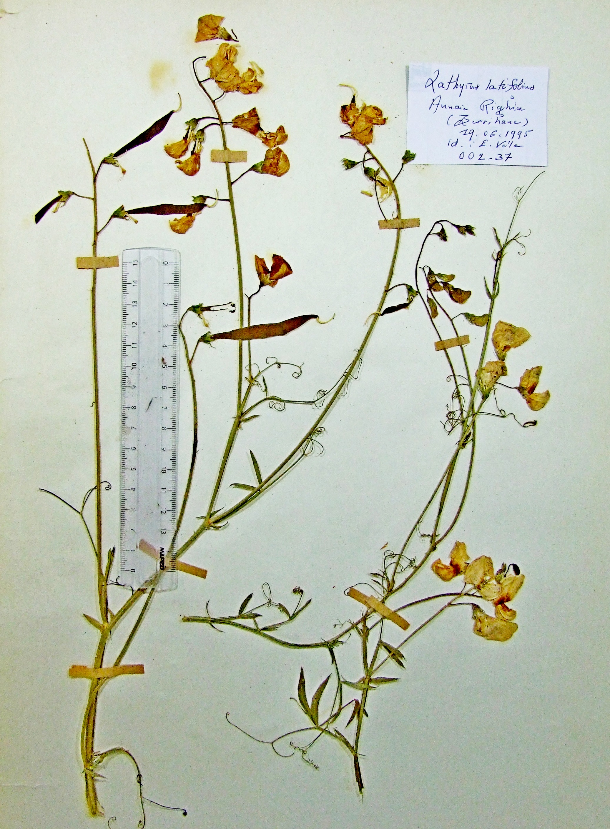 | 002_37 | Leguminosae Lathyrus latifolius L. subsp. algericus (Ginzb.) Dobignard | x=8.144658 y=36.842783 z=22 m | aunaie Righia 1 El Tarf 1995-06-19 |  |