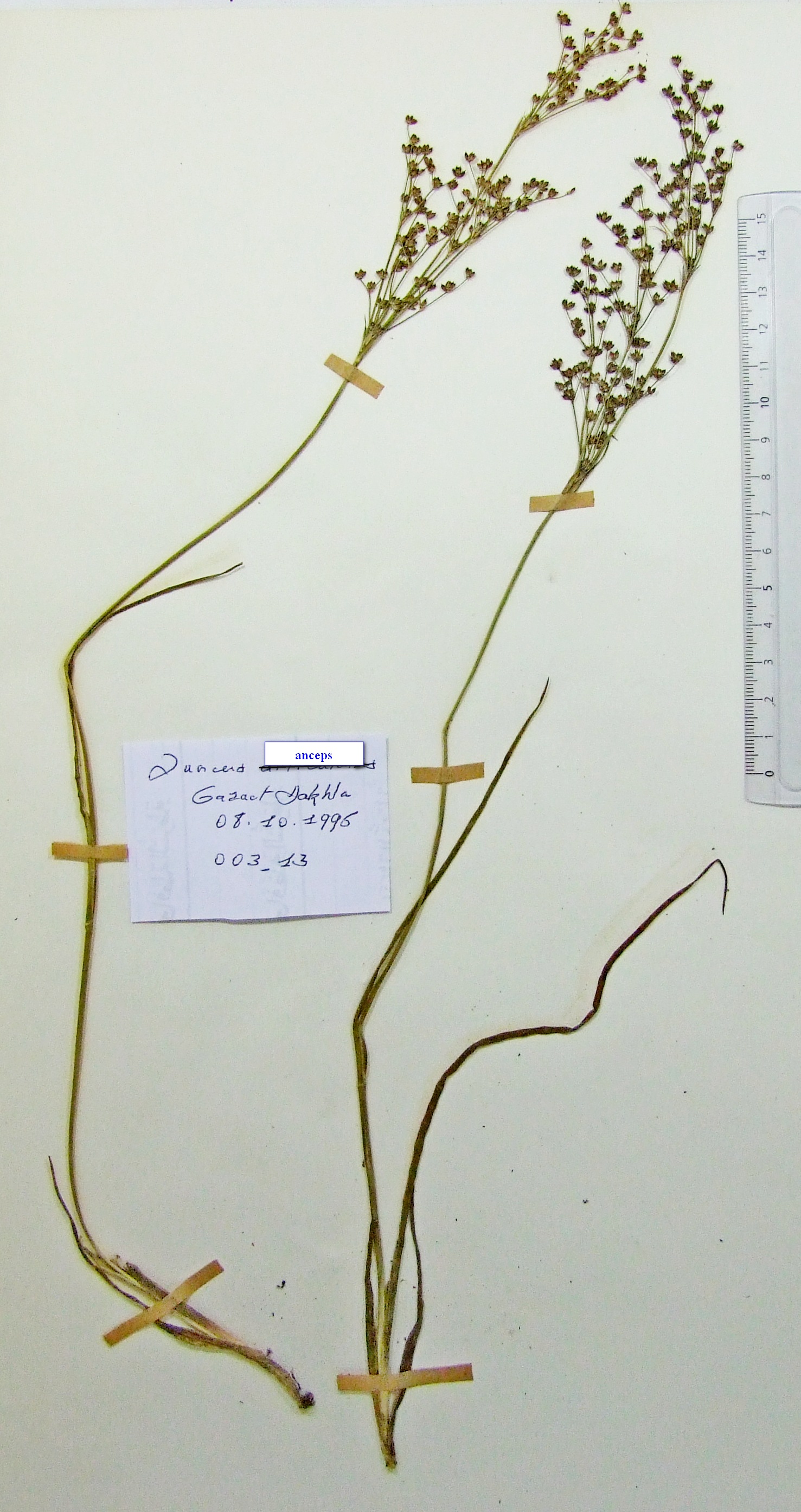 | 002_45 | Juncaceae Juncus anceps Laharpe | x=7.946167 y=36.837692 z=6 m | mare Sangliers Annaba 1999-06-12 | |
