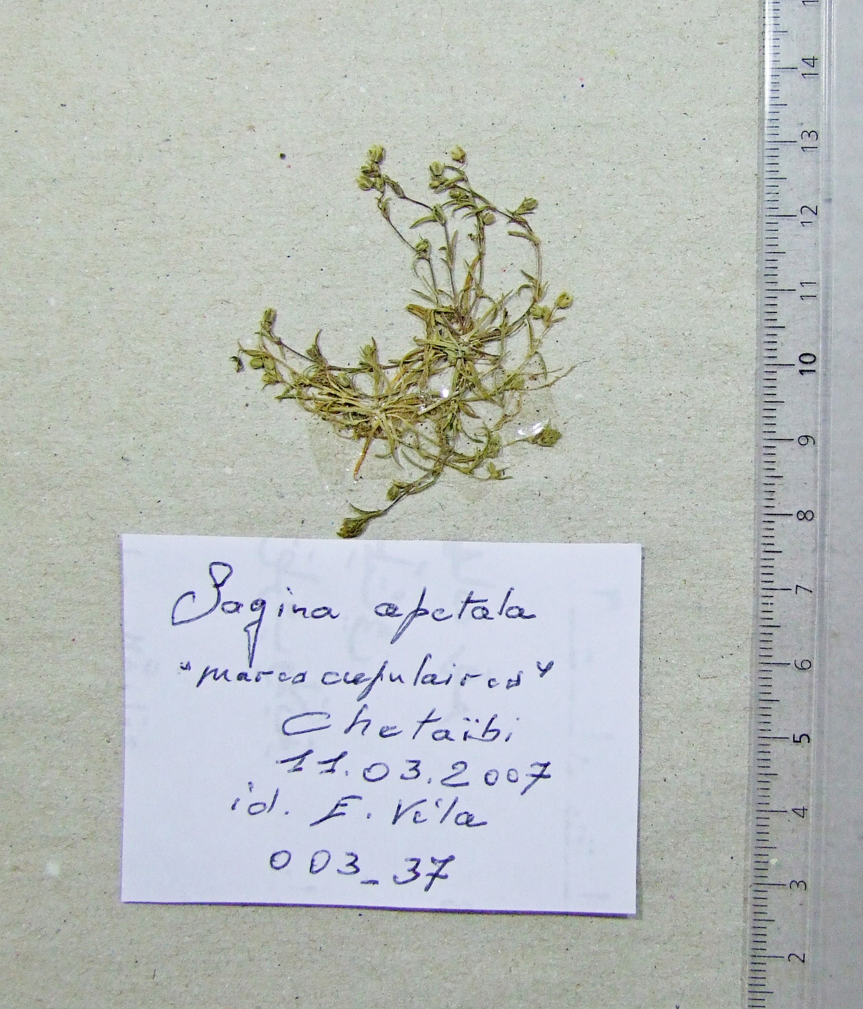 | 001_33 | Caryophyllaceae Spergula arvensis L. subsp. chieusseana (Pomel) Briq. | x=7.987347 y=36.844281 z=5 m | garaet Dakhla El Tarf 1996-06-14 | |
