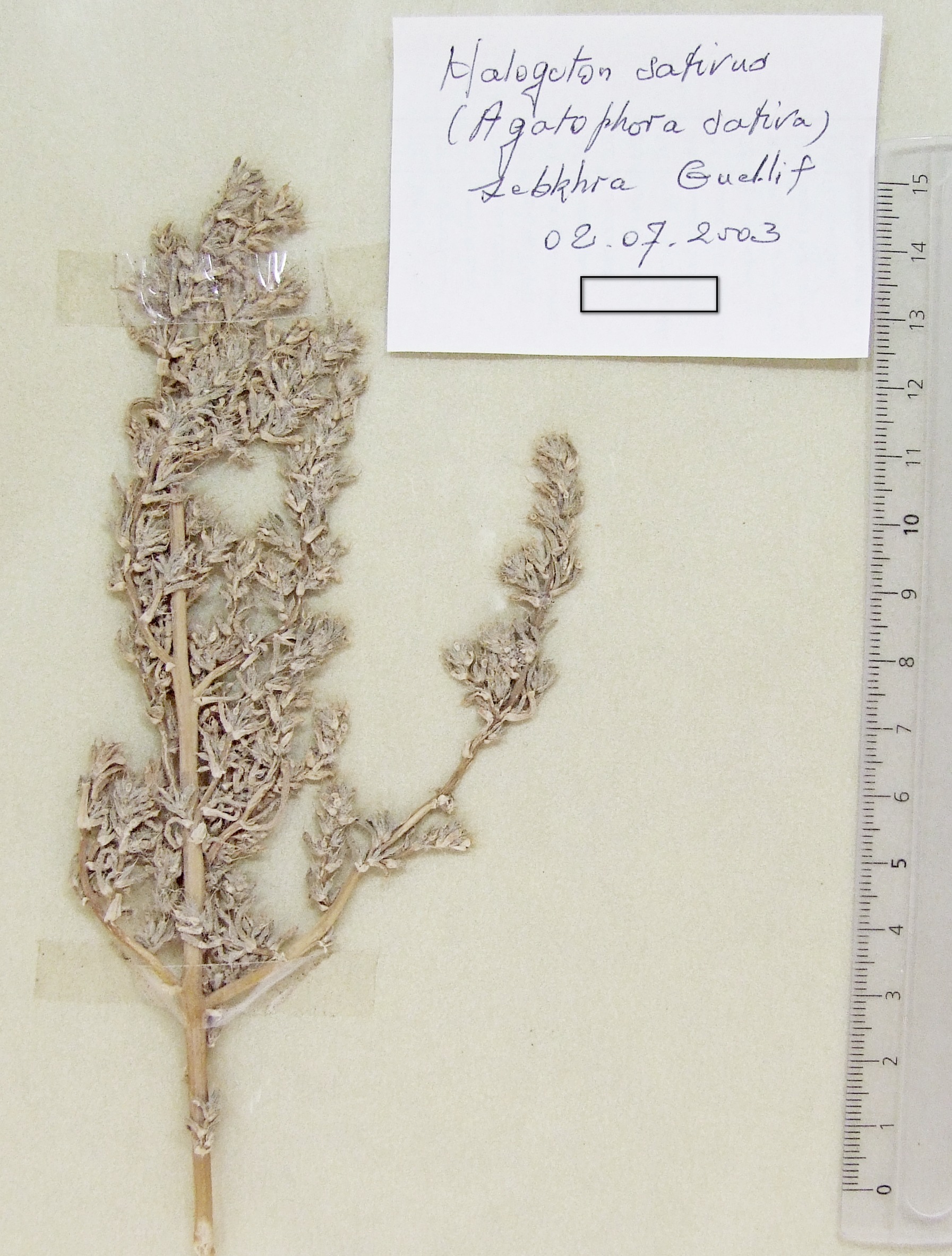 | 010_03 | Plumbaginaceae Limoniastrum guyonianum Boiss. | x=5.971867 y=34.148114 z=-19 m | Sidi Merouane El Oued 2003-02-22 | |