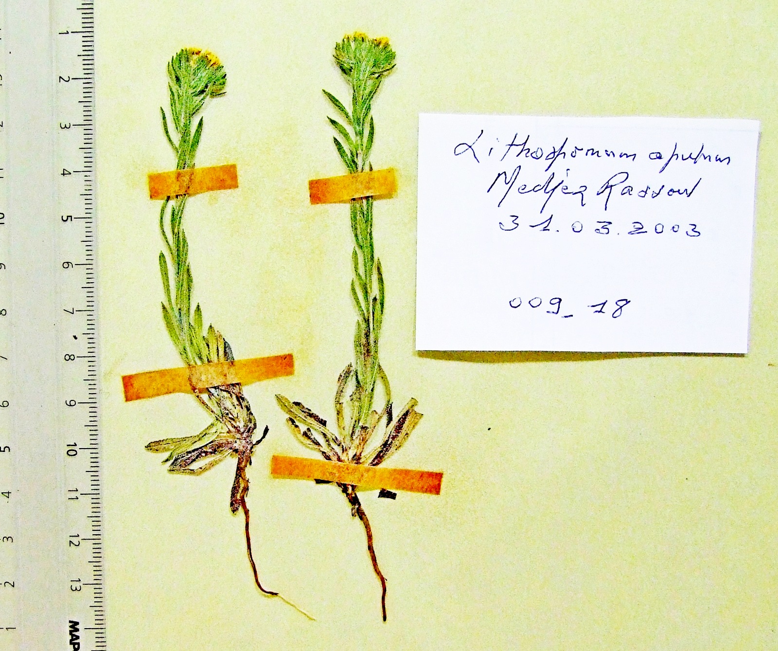 | 009_18 | Boraginaceae Neatostema apulum (L.) I.M. Johnston | x=7.621806 y=36.706278 z=76 m | Medjez Rassoul Annaba 2003-03-31 |  |