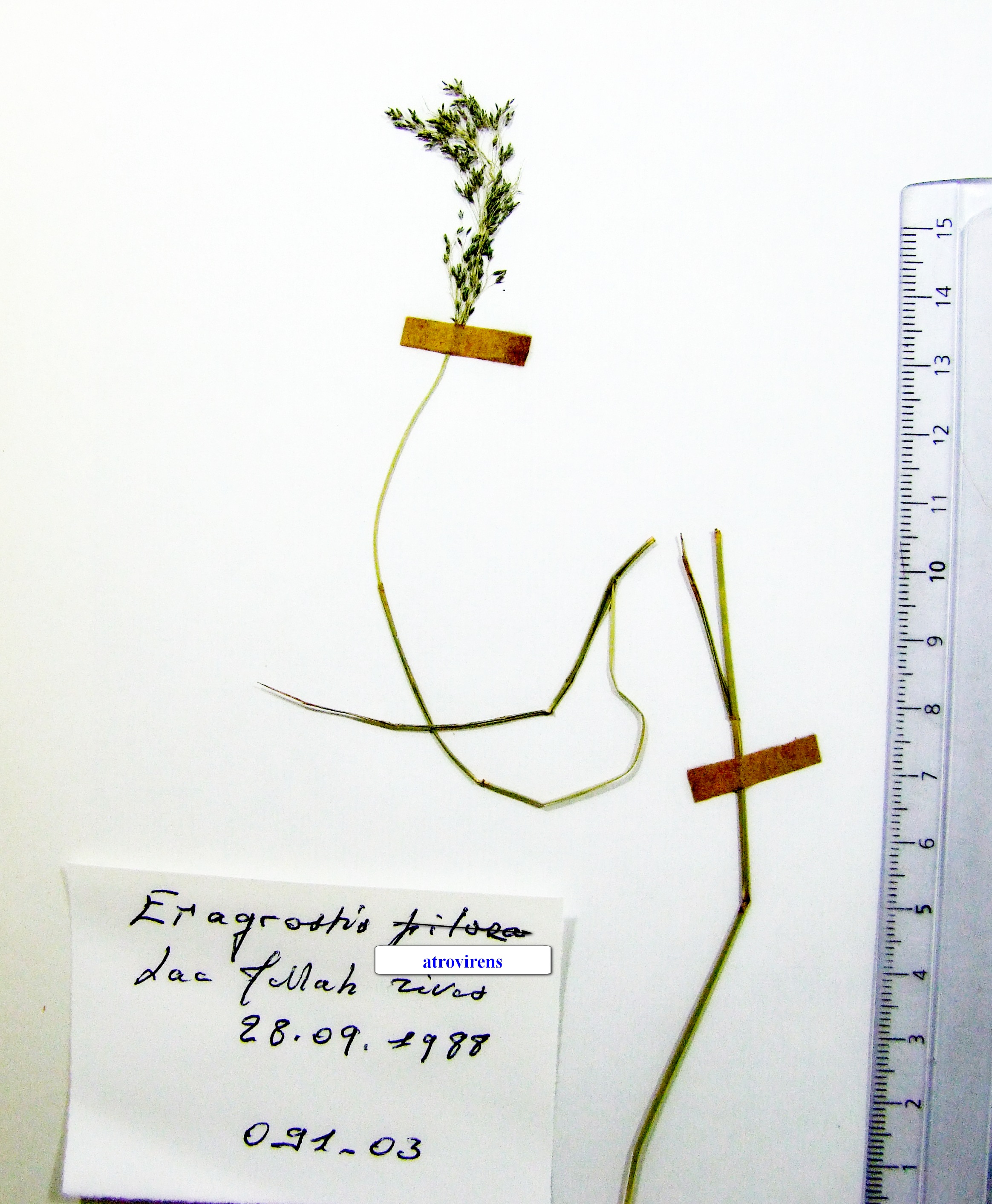 | 091_05 | Poaceae Eragrostis atrovirens (Desf.) Trin. ex Steud. | x=8.209653 y=36.821889 z=15 m | aunaie Oum el Agareb El Tarf 1993-08-22 |  |