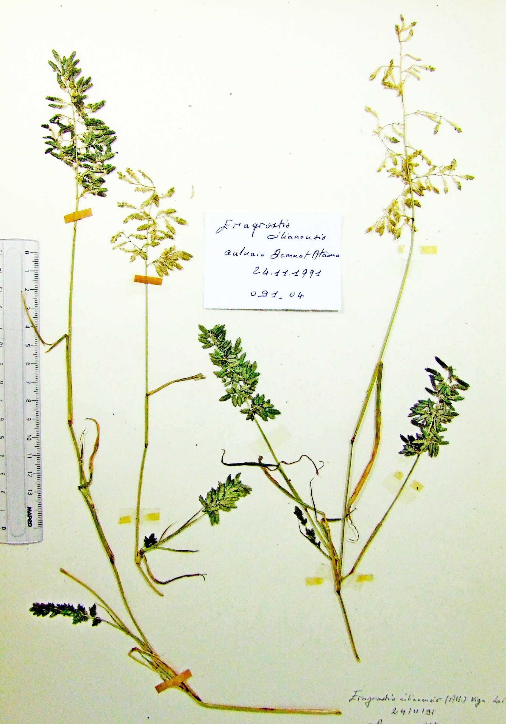 | 091_04 | Poaceae Eragrostis cilianensis (All.) Vignolo ex Janch. | x=7.259181 y=36.889869 z=38 m | aunaie Demnat Ataoua Skikda 1991-03-24 |  |
