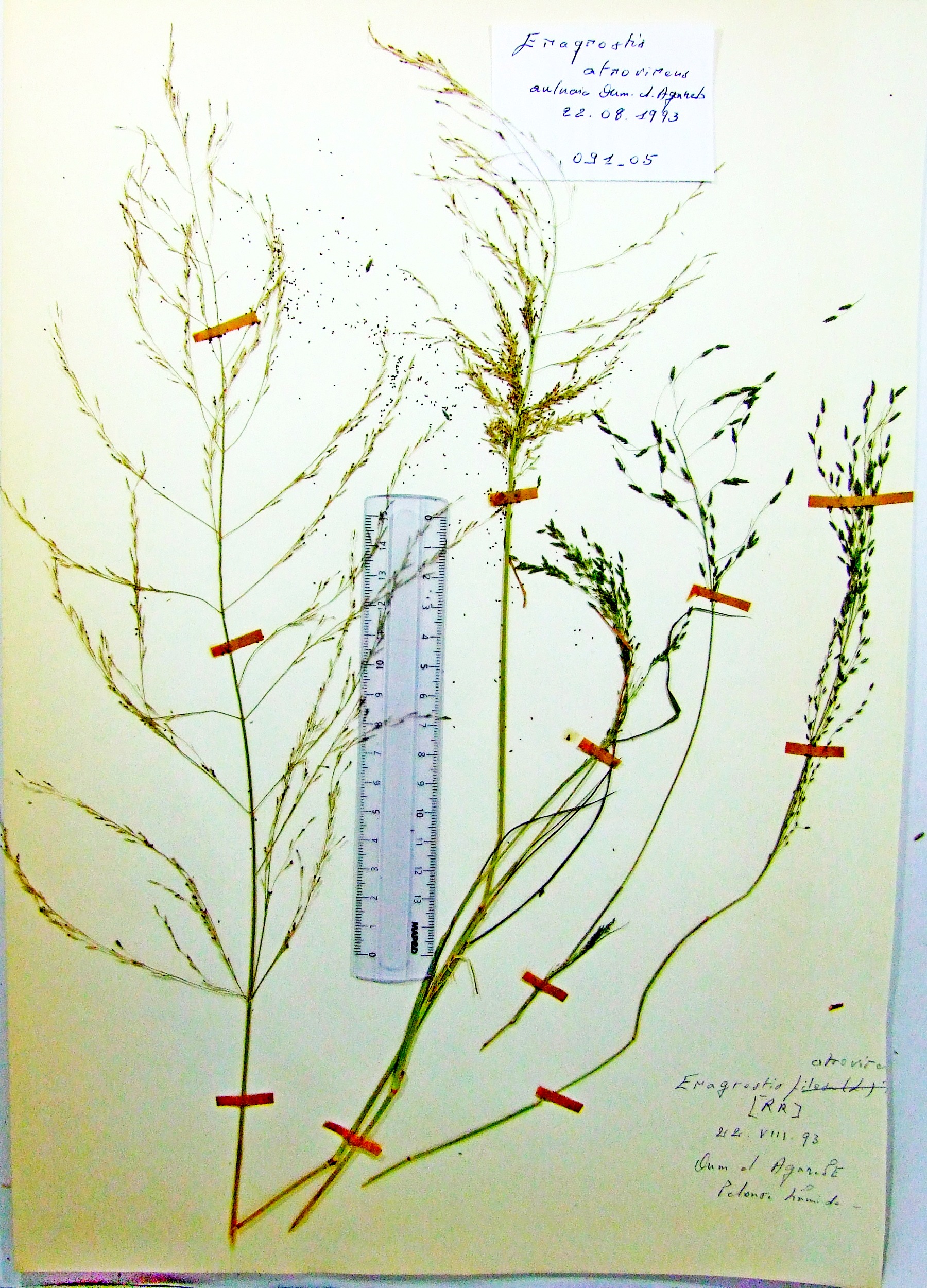 | 091_03 | Poaceae Eragrostis atrovirens (Desf.) Trin. ex Steud. | x=8.340844 y=36.890367 z=2 m | lac Mellah E El Tarf 1988-09-28 |  |
