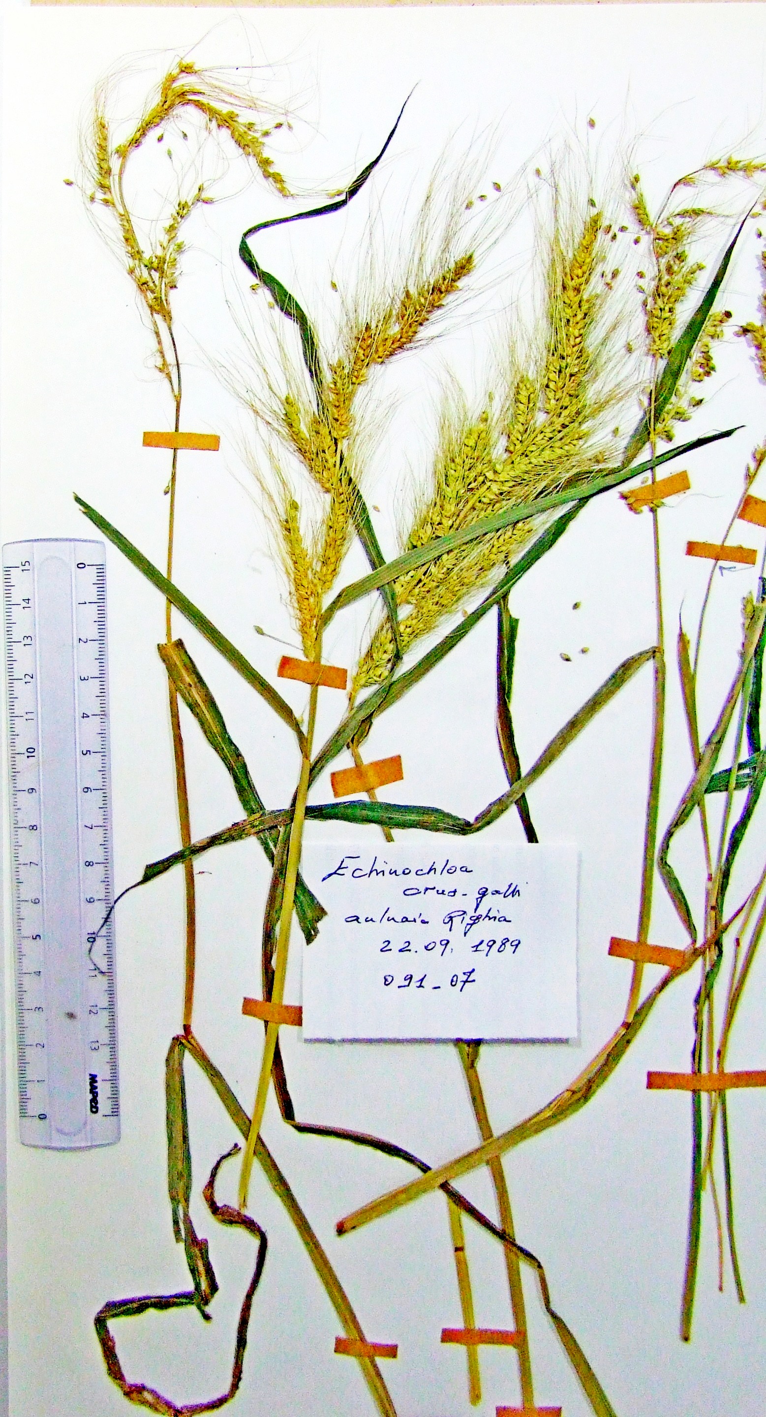 | 091_07 | Poaceae Echinochloa crus-galli (L.) P. Beauv. | x=8.188833 y=36.853389 z=22 m | aunaie Righia 2 El Tarf 1989-09-22 |  |