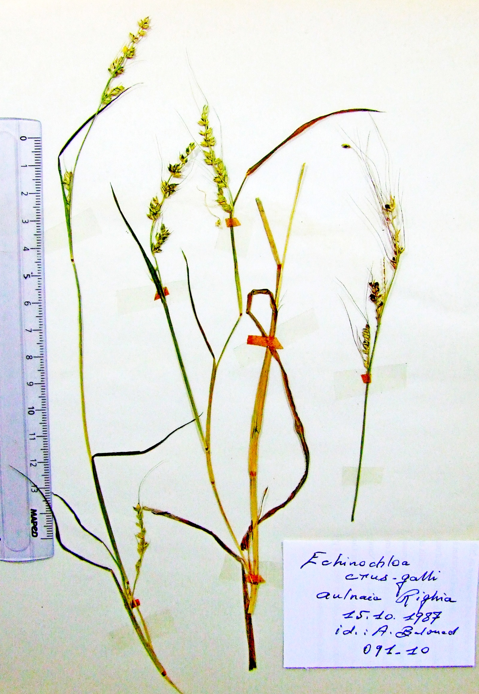 | 091_10 | Poaceae Echinochloa crus-galli (L.) P. Beauv. | x=8.188833 y=36.853389 z=22 m | aunaie Righia 2 El Tarf 1987-10-15 |  |