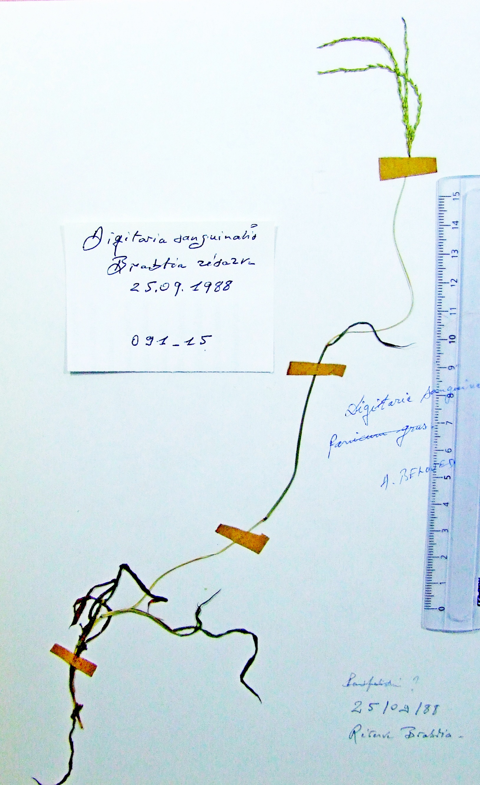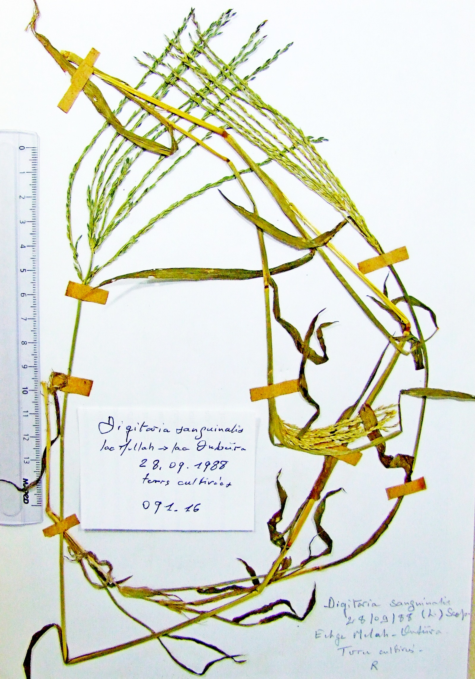 | 091_16 | Poaceae Digitaria sanguinalis (L.) Scop. | x=8.427444 y=36.839278 z=26 m | lac Oubeïra El Tarf 1988-09-28 |  |