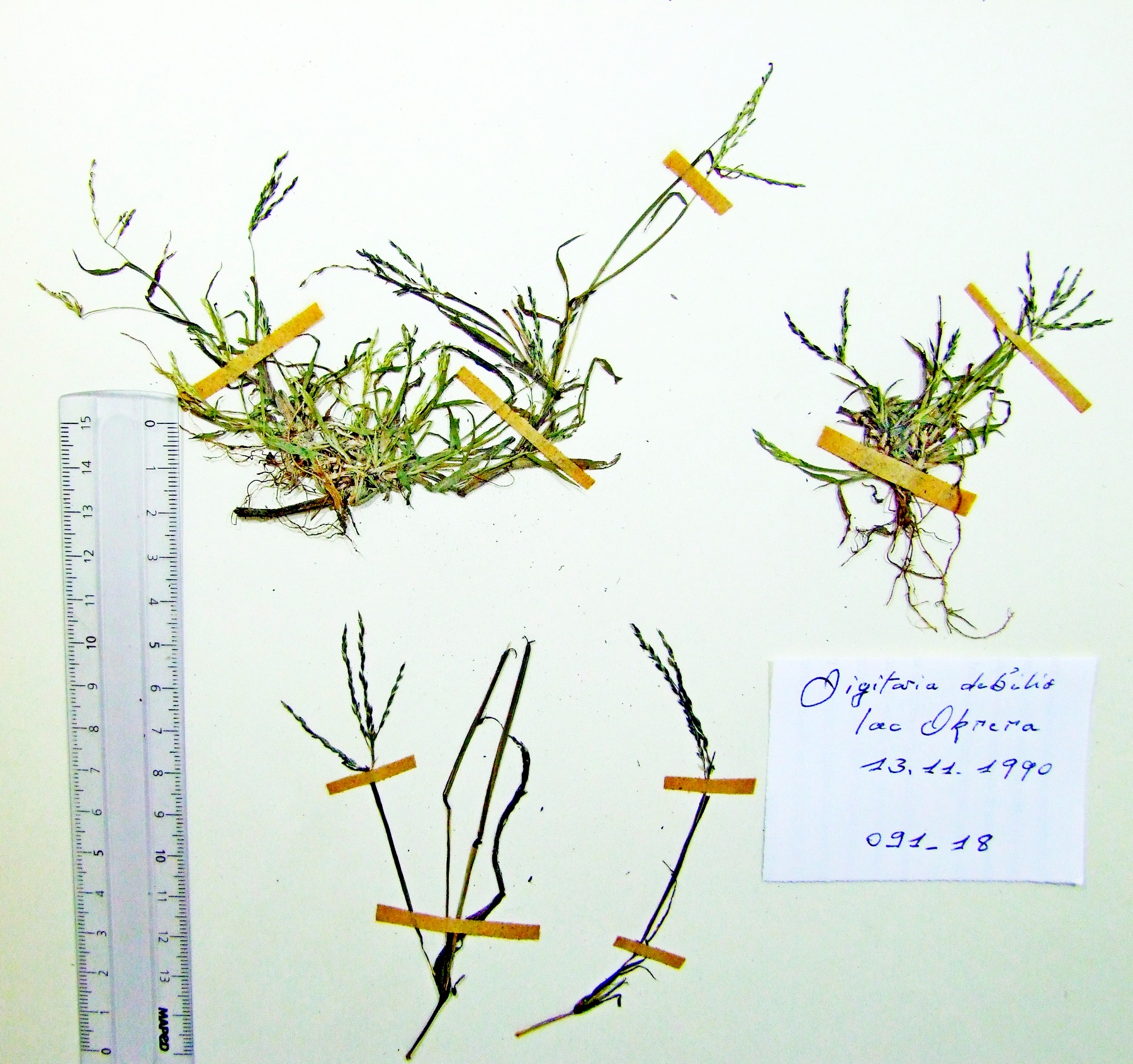| 091_18 | Poaceae Digitaria debilis (Desf.) Willd. | x=8.176467 y=36.848194 z=23 m | lac Okrera El Tarf 1990-11-13 |  |