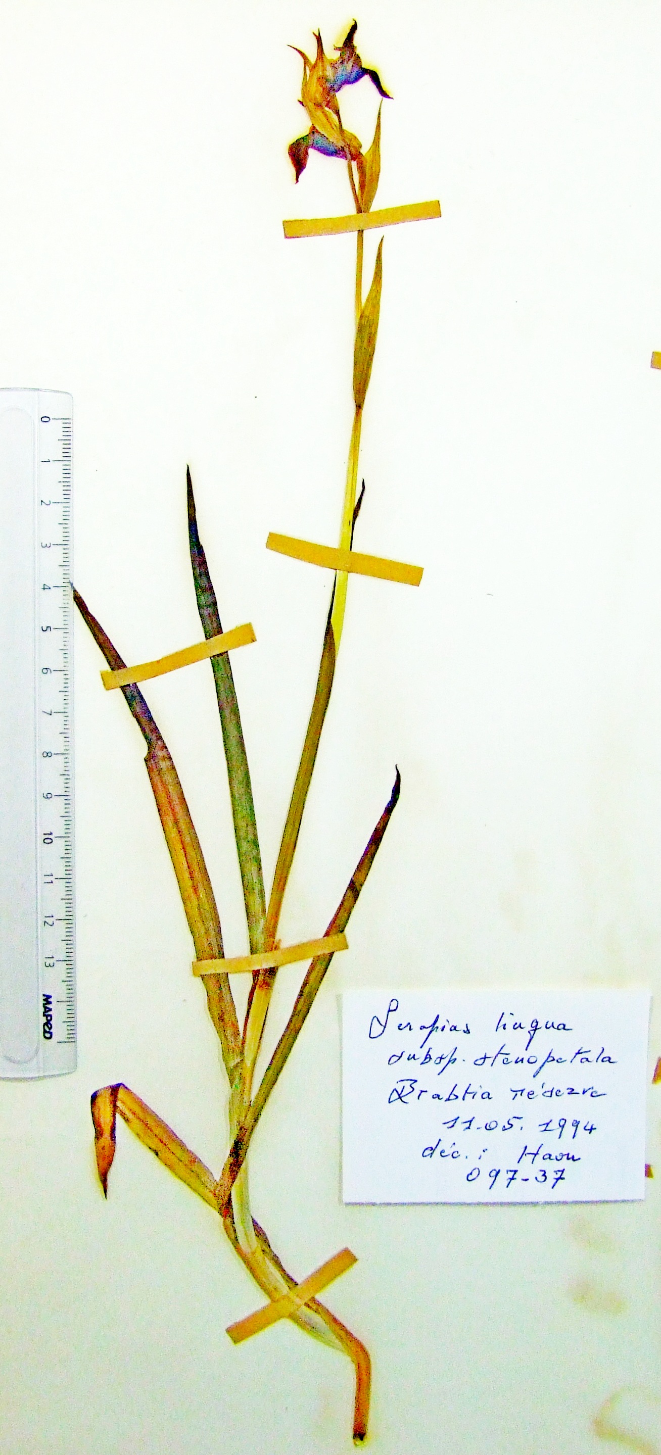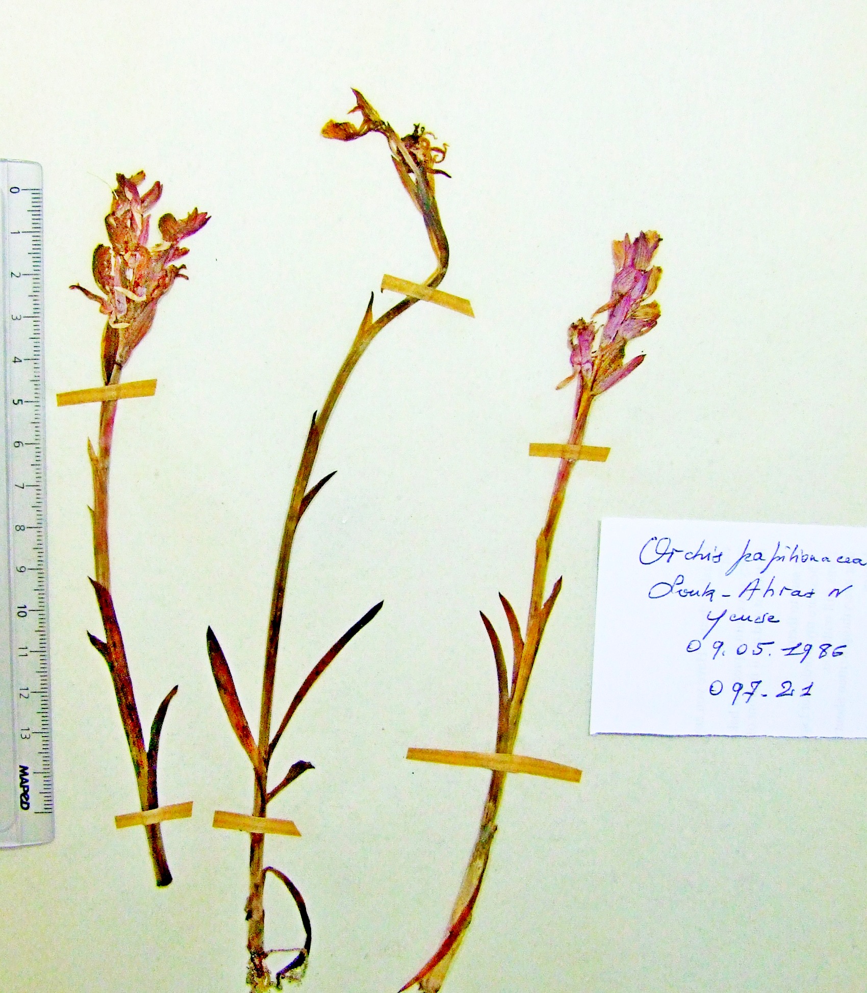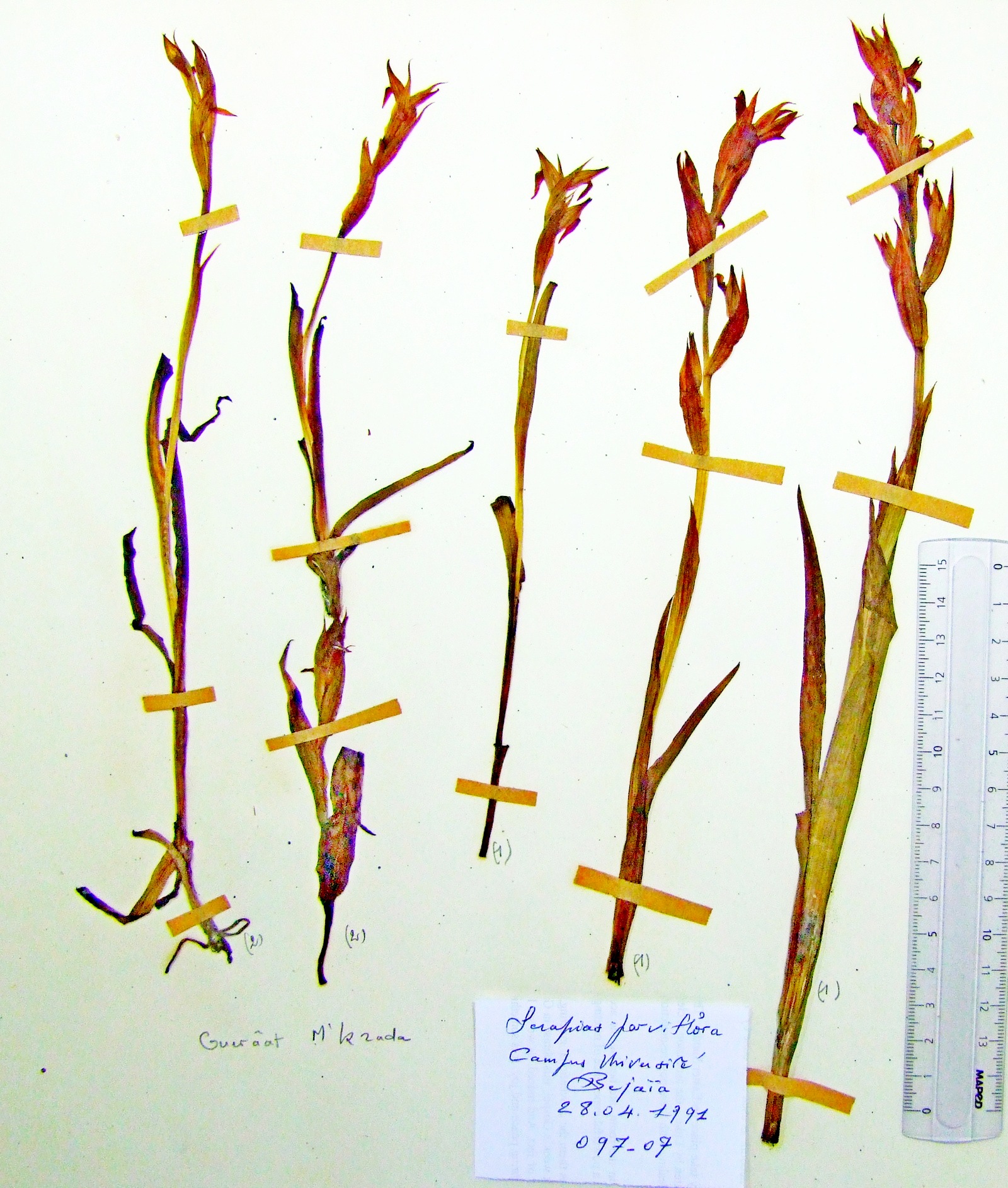 | 100_23 | Orchidaceae Serapias lingua L. subsp. lingua | x=7.861833 y=36.339472 z=812 m | Aïn Talhi Souk Ahras 2011-04-29 |  |