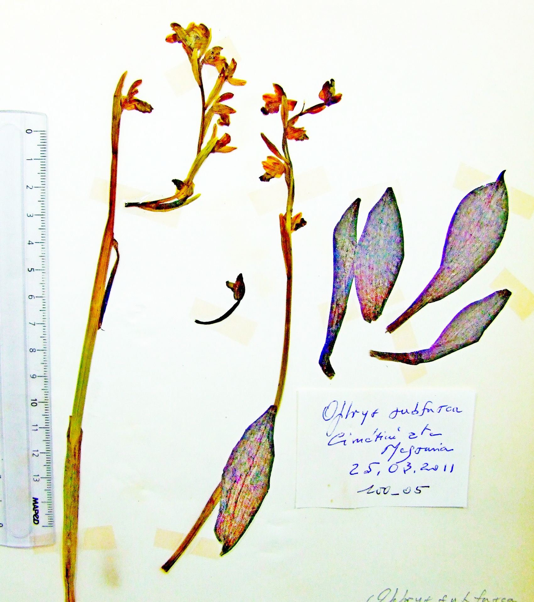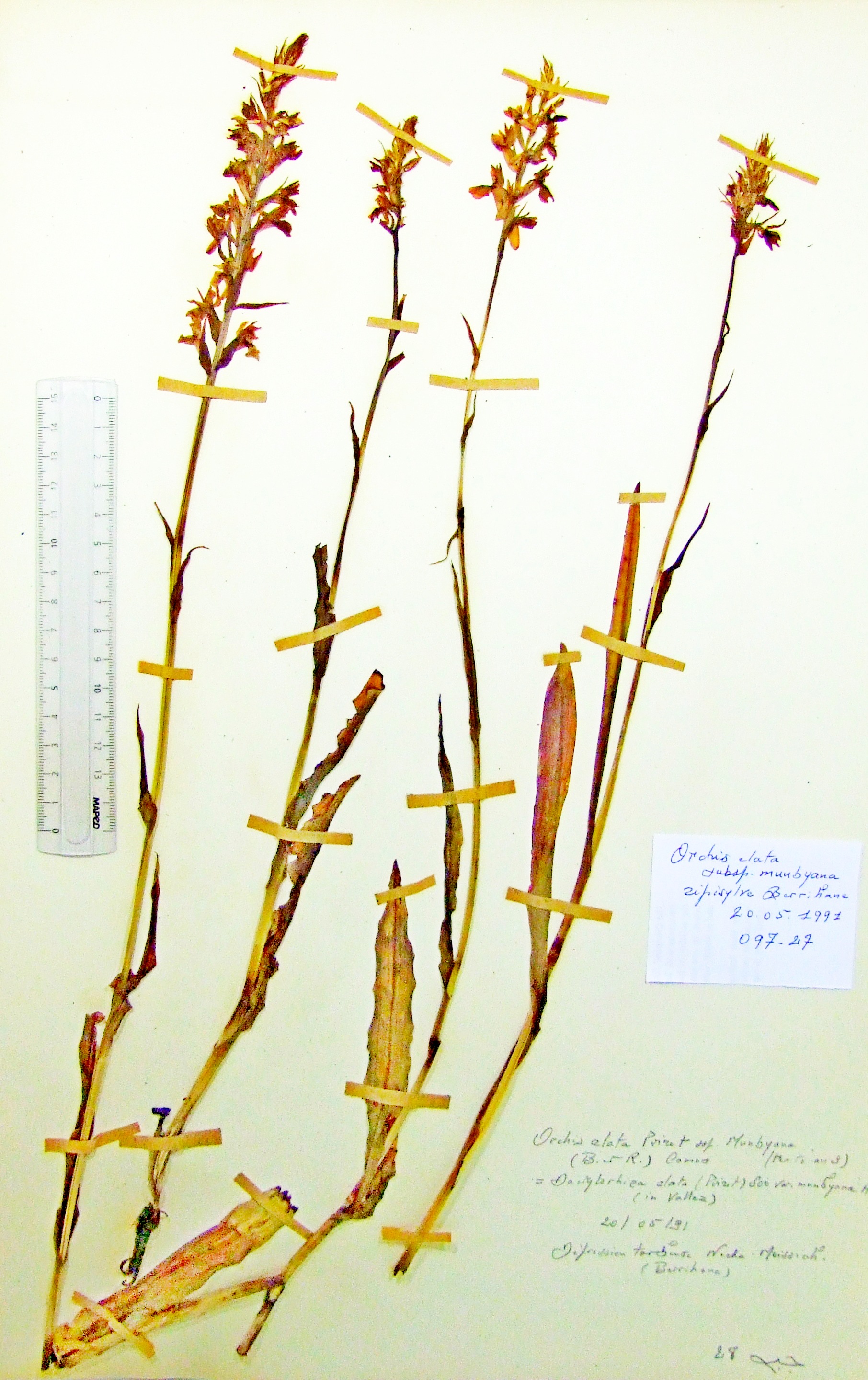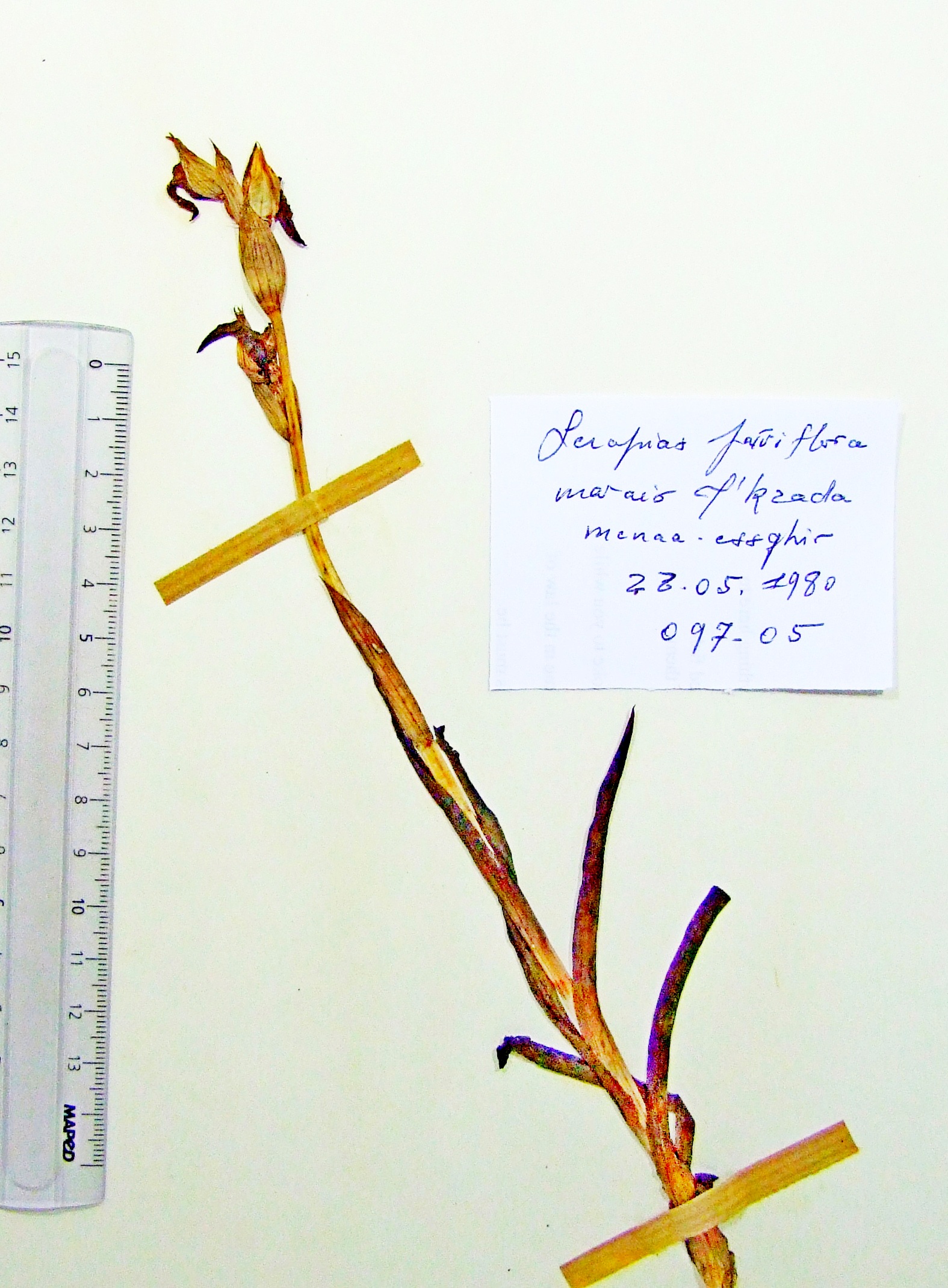 | 100_23 | Orchidaceae Serapias lingua L. subsp. lingua | x=7.861833 y=36.339472 z=812 m | Aïn Talhi Souk Ahras 2011-04-29 |  |