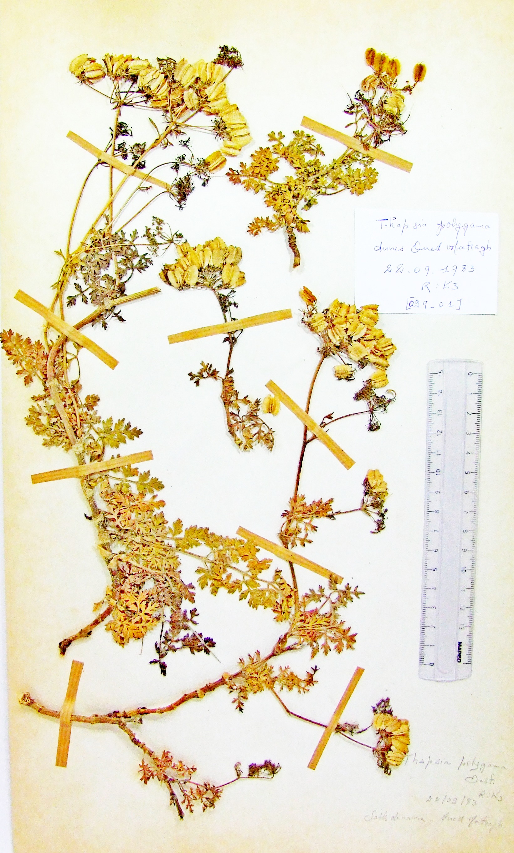 | 099_01 | Umbelliferae Rouya polygama (Desf.) Coincy | x=7.942253 y=36.845903 z=13 m | dunes oued Mafragh 1 Annaba 1983-09-22 |  |