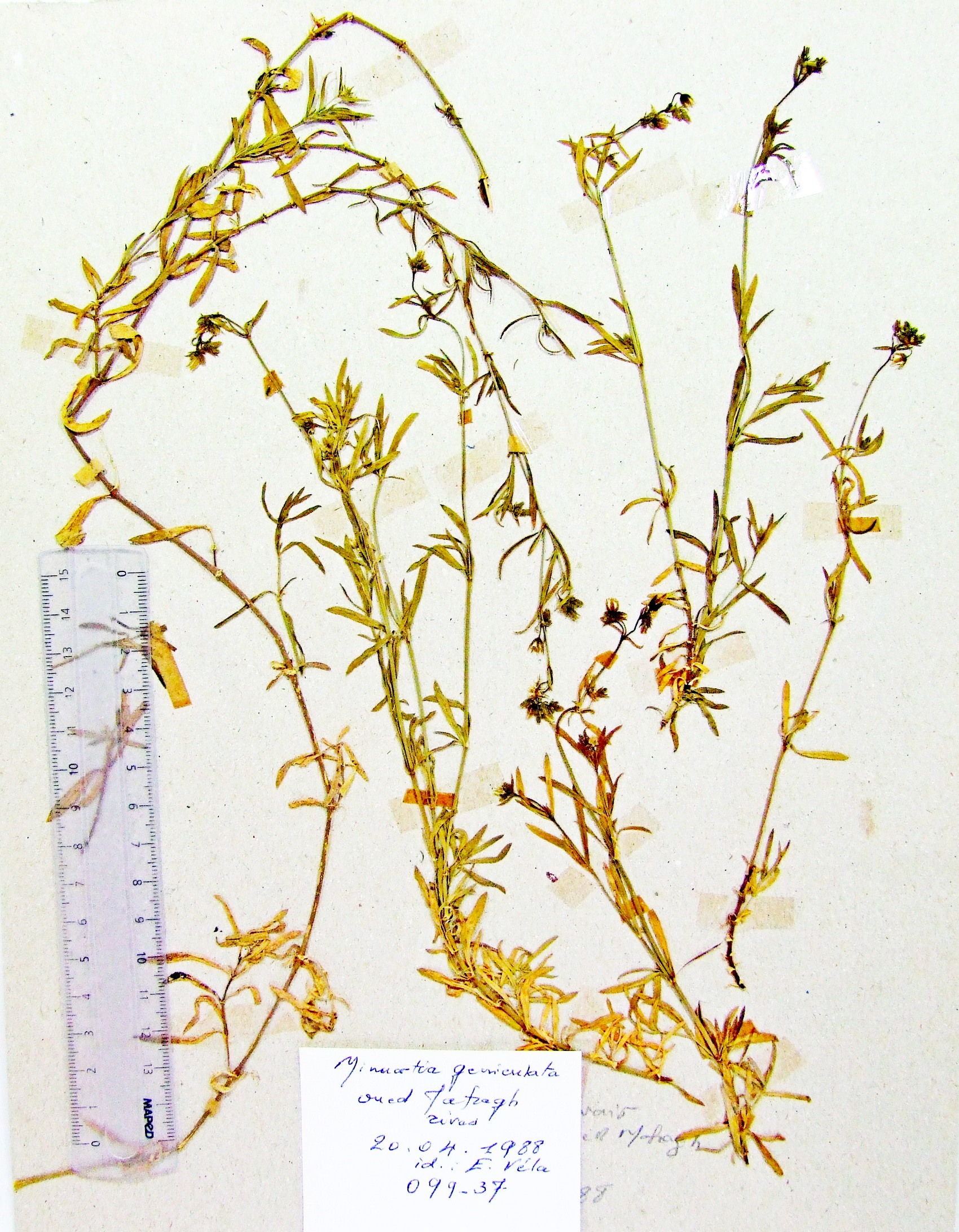 | 099_37 | Caryophyllaceae Rhodalsine geniculata (Poiret) F.N.Williams | x=7.942253 y=36.845903 z=13 m | dunes oued Mafragh 1 Annaba 1988-04-20 |  |