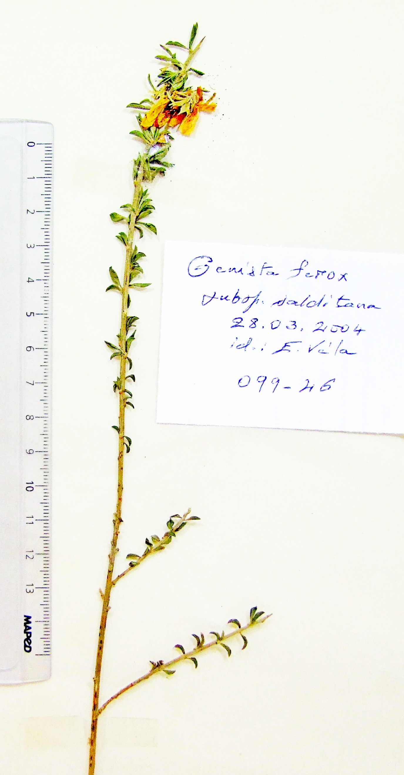 | 099_46 | Leguminosae Genista ferox (Poiret) Dum. Cours | x=5.102911 y=36.774011 z=79 m | cap Carbon Béjaïa 2004-03-28 |  |