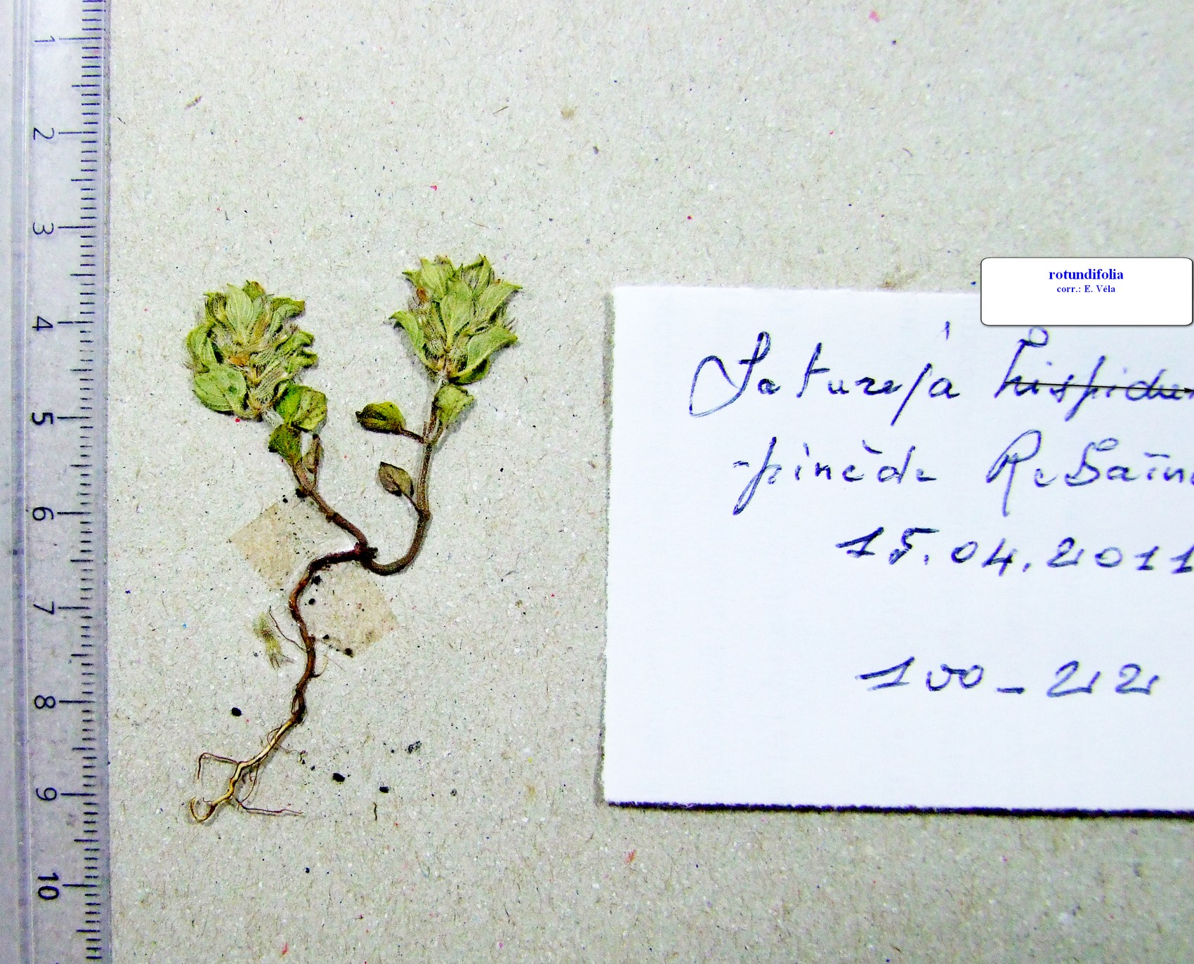 | 100_22 | Labiatae Acinos rotundifolius Pers. | x=8.246917 y=36.191417 z=900 m | pinède Rebaïne Souk Ahras 2011-04-15 |  |