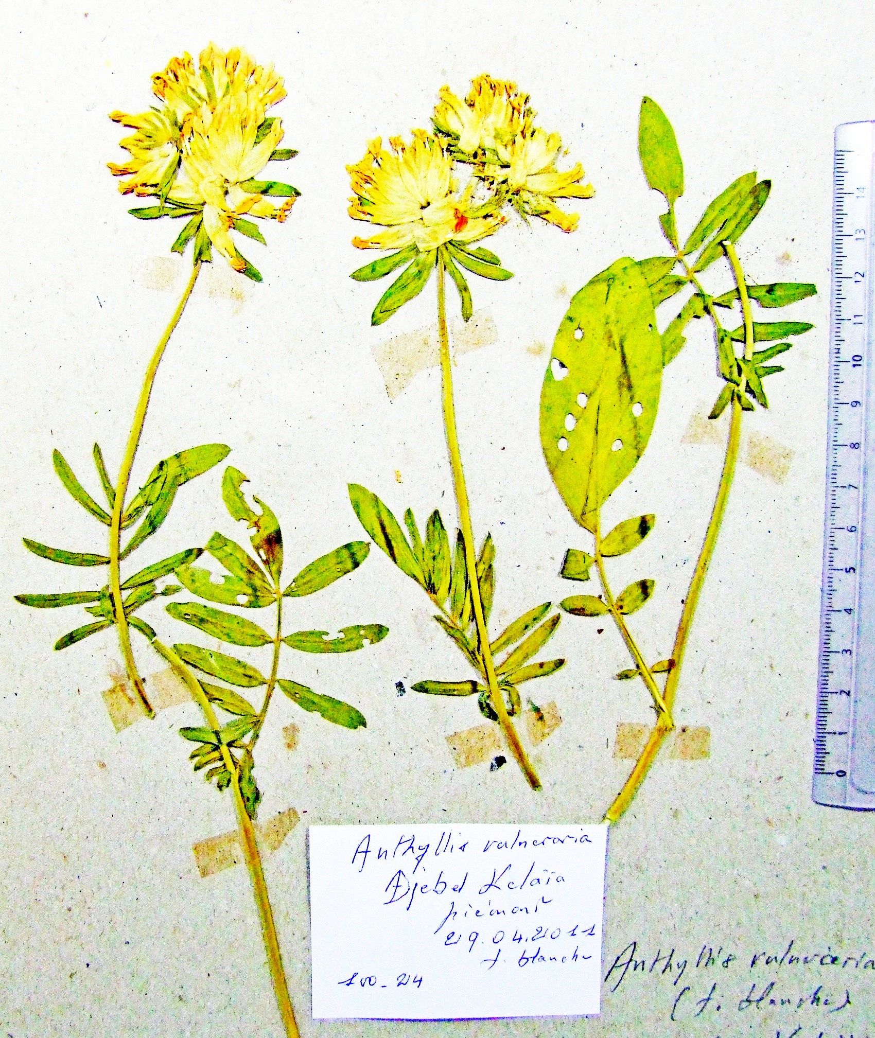 | 100_24 | Leguminosae Anthyllis vulneraria L. subsp. maura (Beck.) Becker | x=7.888222 y=36.305861 z=846 m | djebel Kelaia Souk Ahras 2011-04-29 |  |