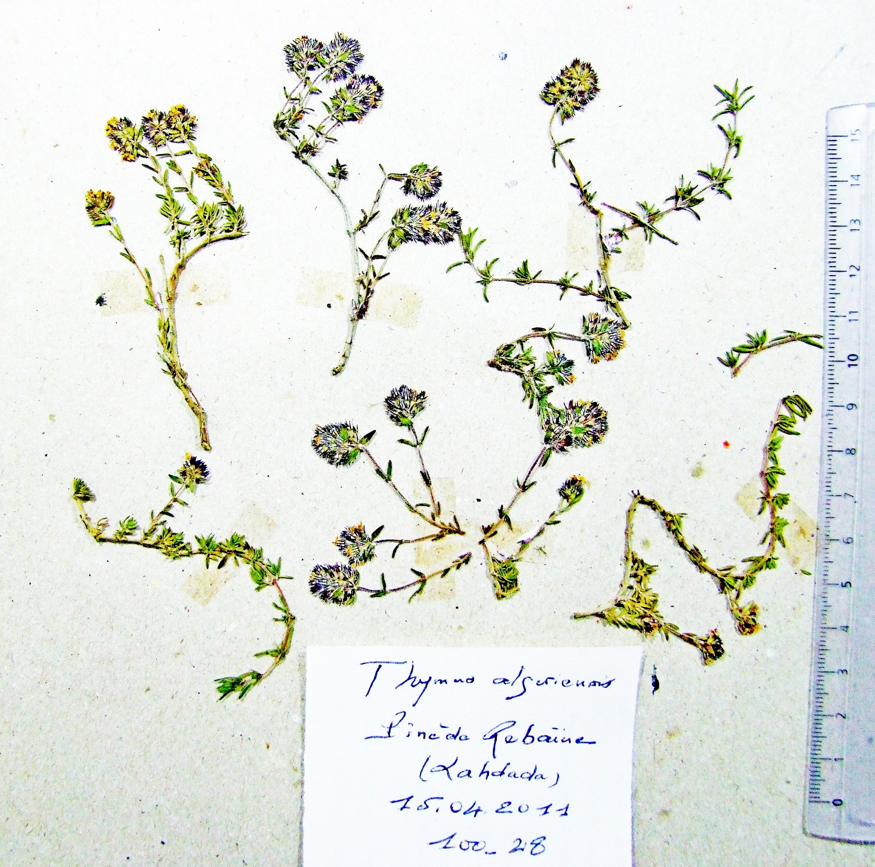 | 100_28 | Labiatae Thymus algeriensis Boiss. & Reut. | x=8.246917 y=36.191417 z=900 m | pinède Rebaïne Souk Ahras 2011-04-15 |  |