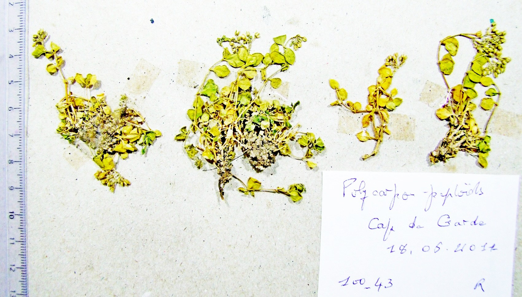 | 100_43 | Caryophyllaceae Polycarpon peploïdes (Lap.) DC. | x=7.175053 y=37.079308 z=48 m | phare cap de Fer Skikda 2011-06-18 |  |