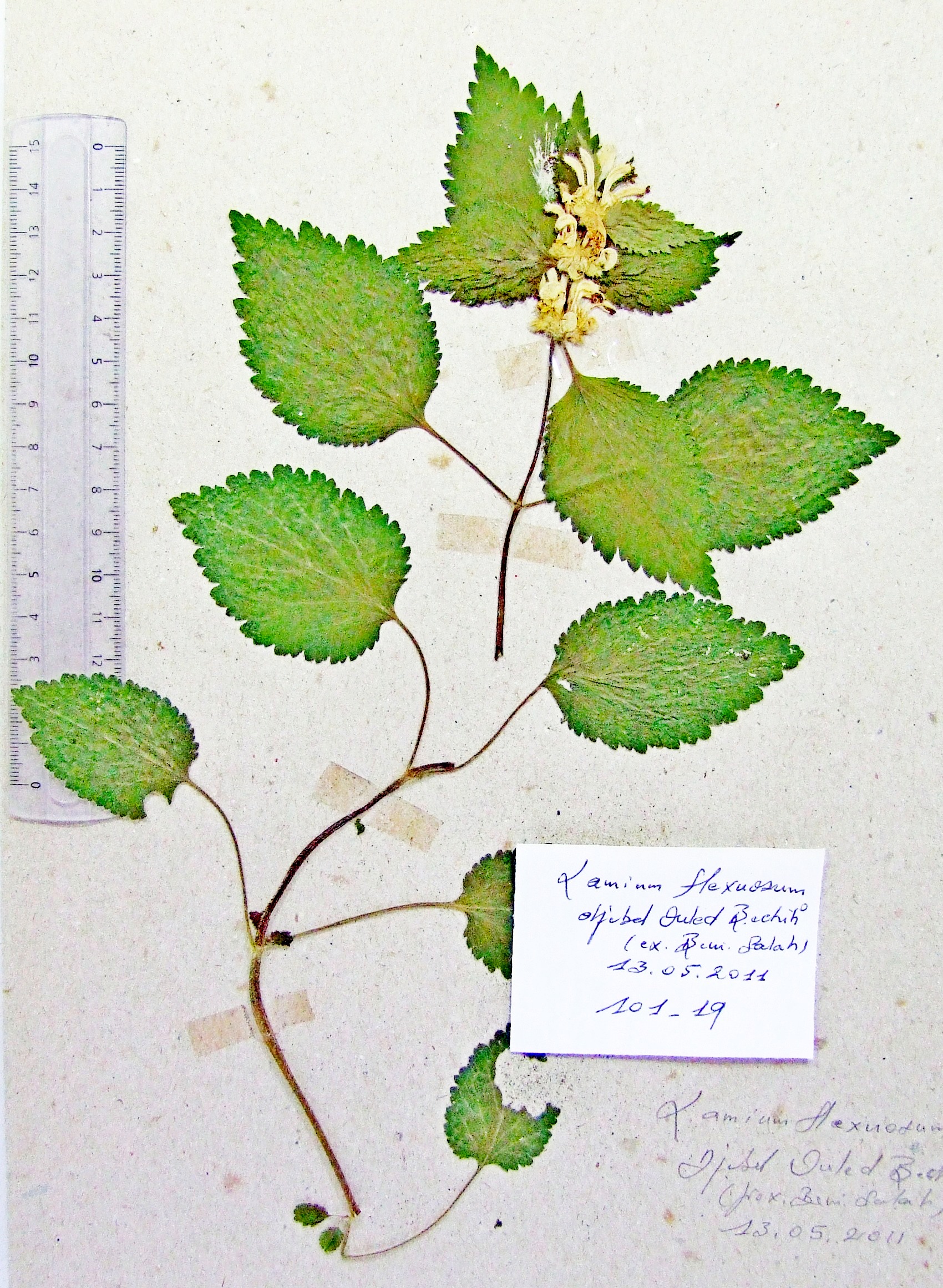 | 101_19 | Labiatae Lamium flexuosum Ten. | x=7.890667 y=36.388278 z=994 m | Beni Salah 3 Guelma 2011-05-13 |  |