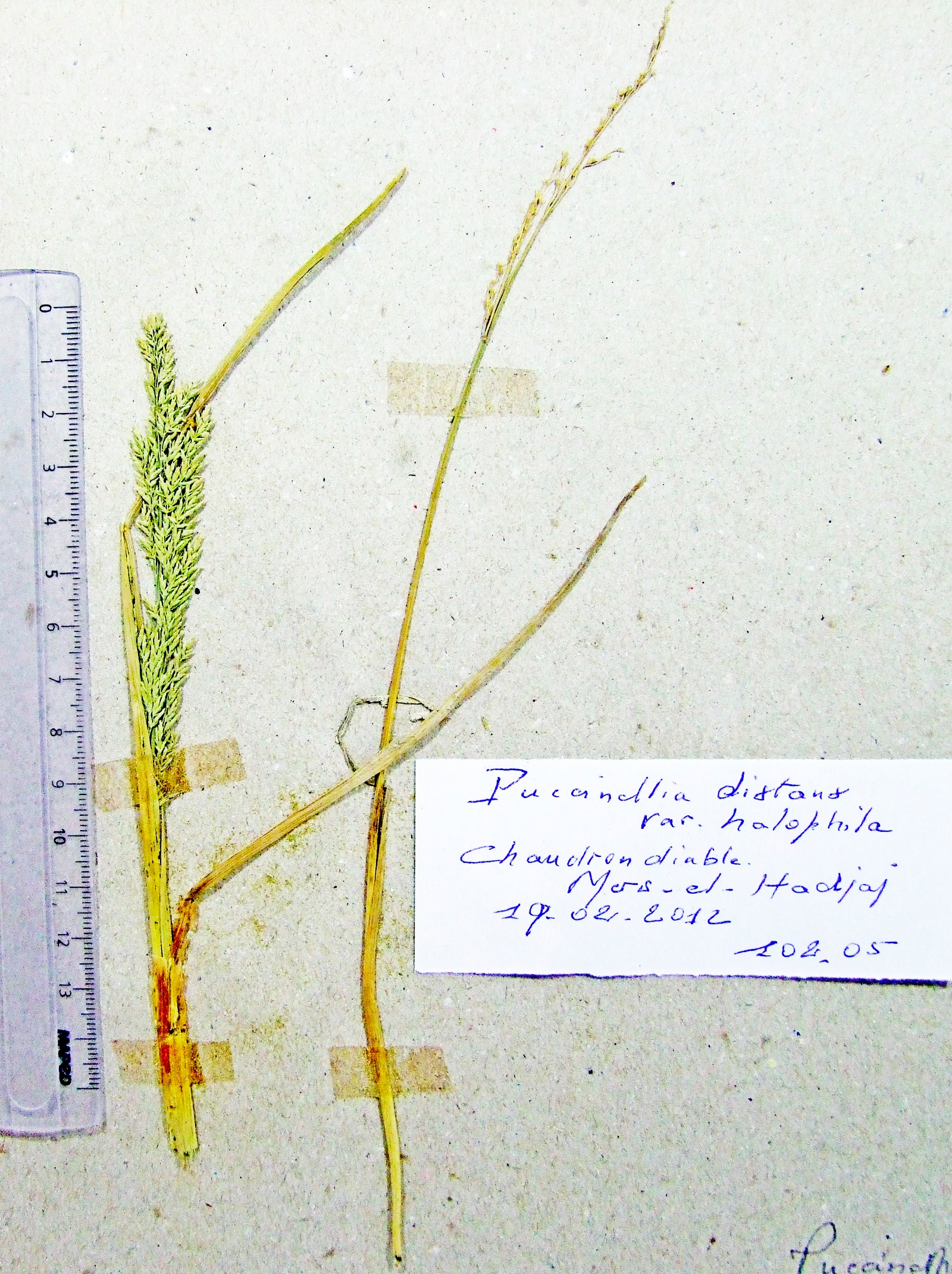 | 102_05 | Poaceae Puccinellia fasciculata (Torr.) E.P. Bicknell | x=-0.168128 y=35.752778 z=82 m | Mers el Hadjaj Oran 2012-02-19 |  |