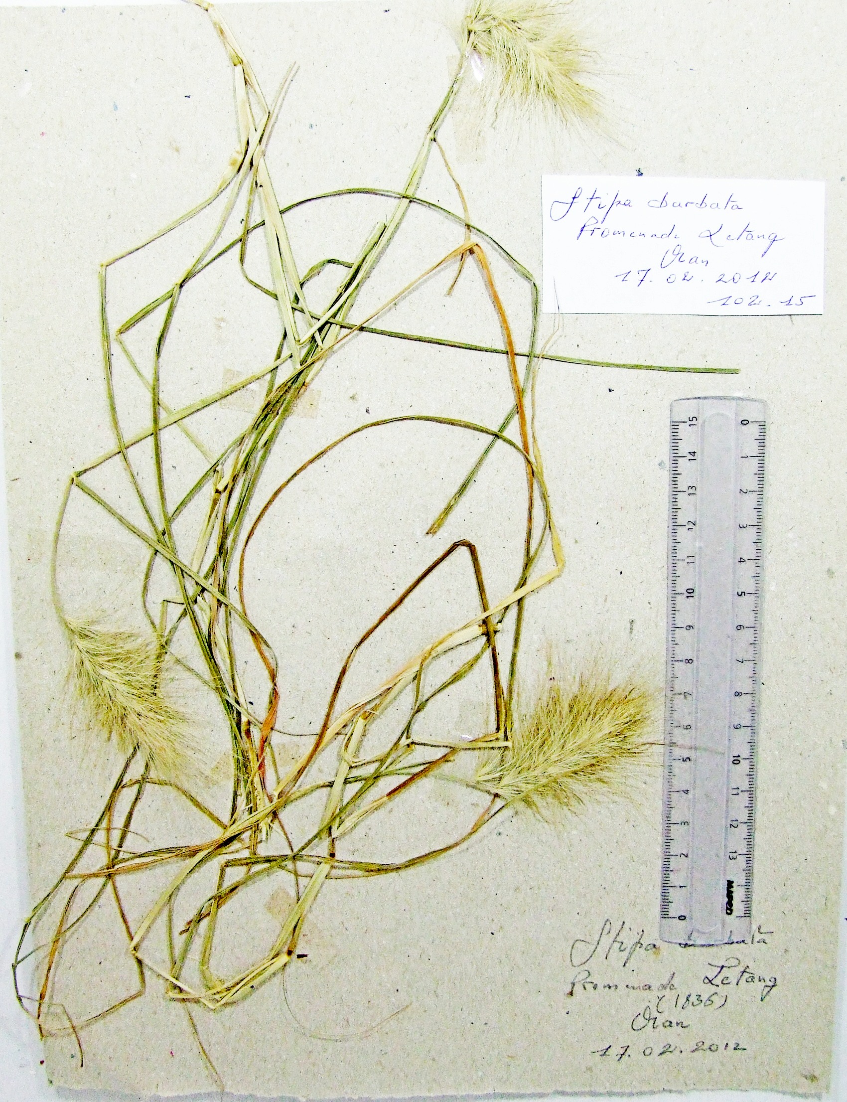 | 102_15 | Poaceae Stipa barbata Desf. | x=-0.645214 y=35.707878 z=38 m | promenade d'Etang Oran 2012-02-17 |  |