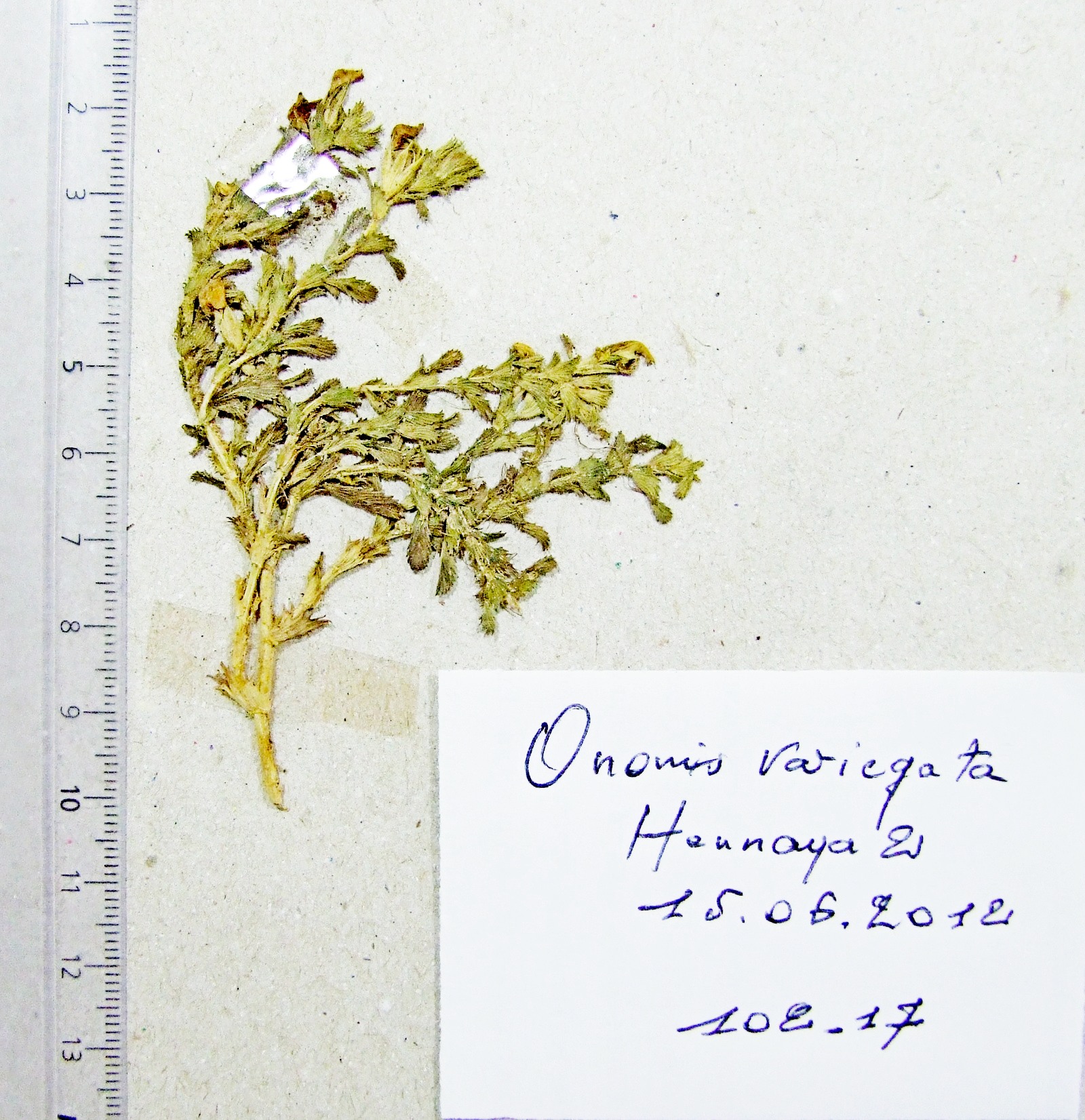 | 102_17 | Leguminosae Ononis variegata L. | x=8.130183 y=36.903686 z=5 m | plage Hennaya El Tarf 2012-06-15 |  |