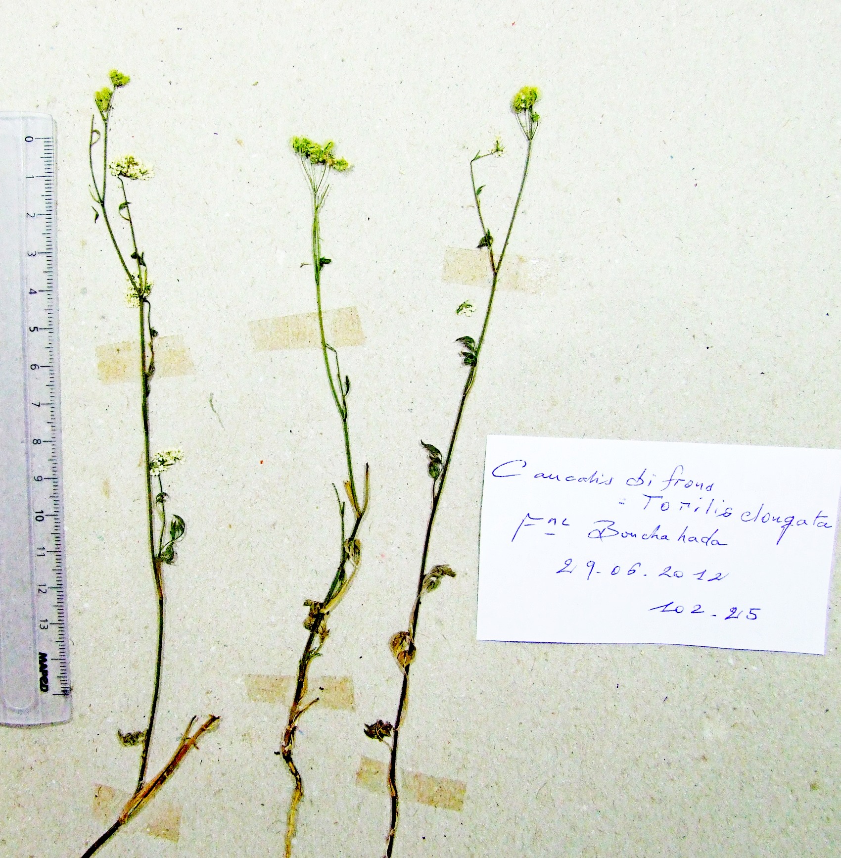 | 102_25 | Umbelliferae Torilis elongata (Hoffmanns. & Link) Samp. | x=8.076222 y=36.402944 z=1078 m | fontaine Bouchahada Souk Ahras 2012-06-29 |  |