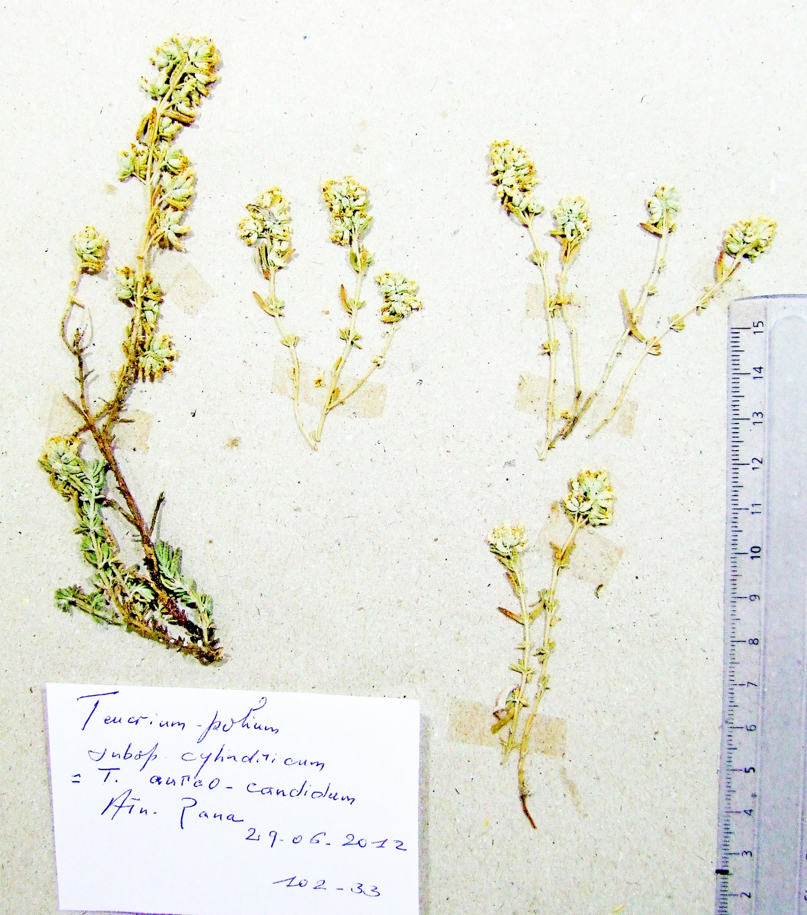 | 102_33 | Labiatae Teucrium polium L. subsp. polium (L.) Briq. | x=8.169861 y=36.382472 z=984 m | Aïn Zana W Souk Ahras 2012-06-29 |  |