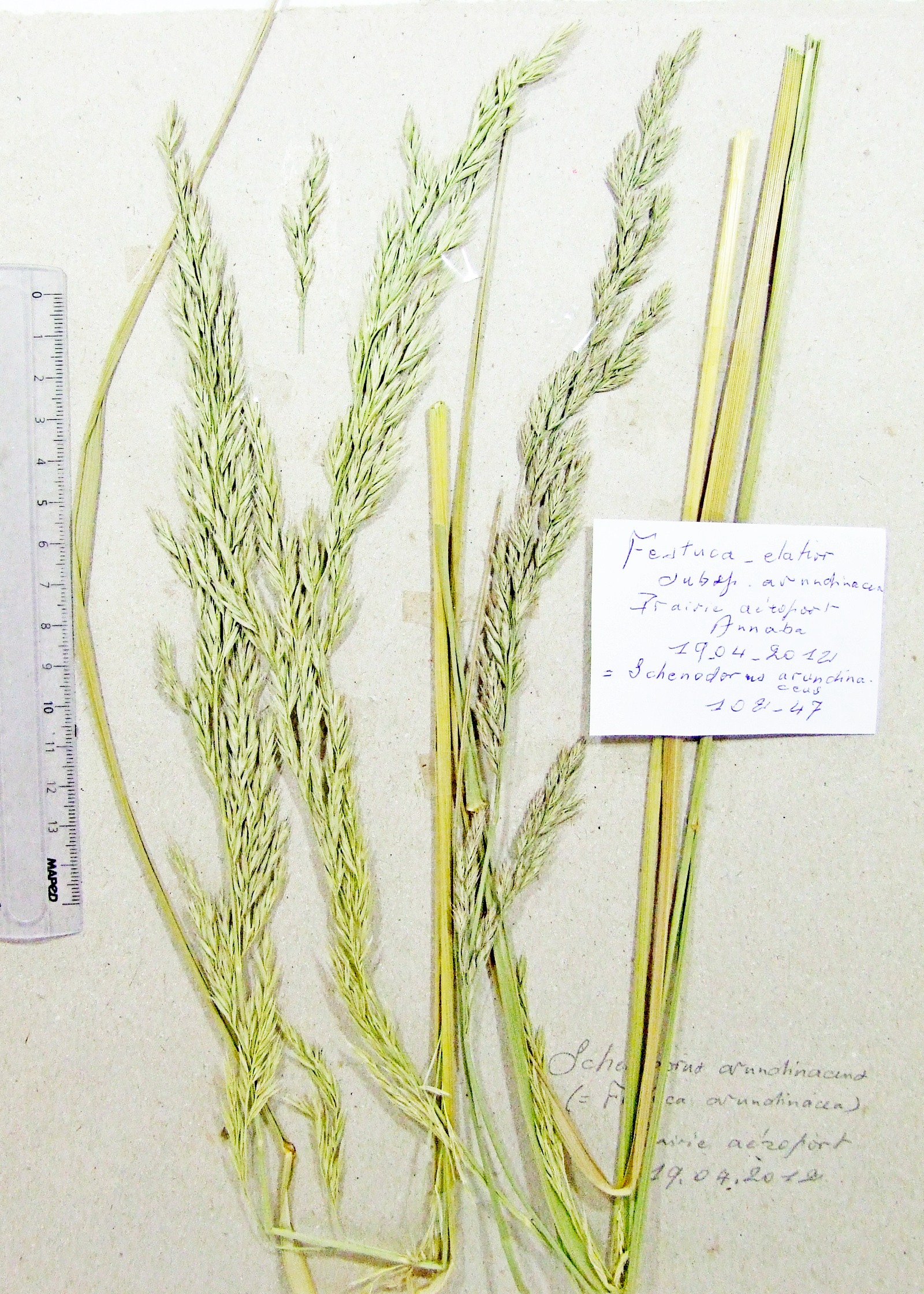 | 102_47 | Poaceae Schenodorus arundinaceus (Schreb.) Dumort. subsp. arundinaceus | x=7.818139 y=36.818889 z=3 m | aéroport Annaba Annaba 2012-04-19 |  |