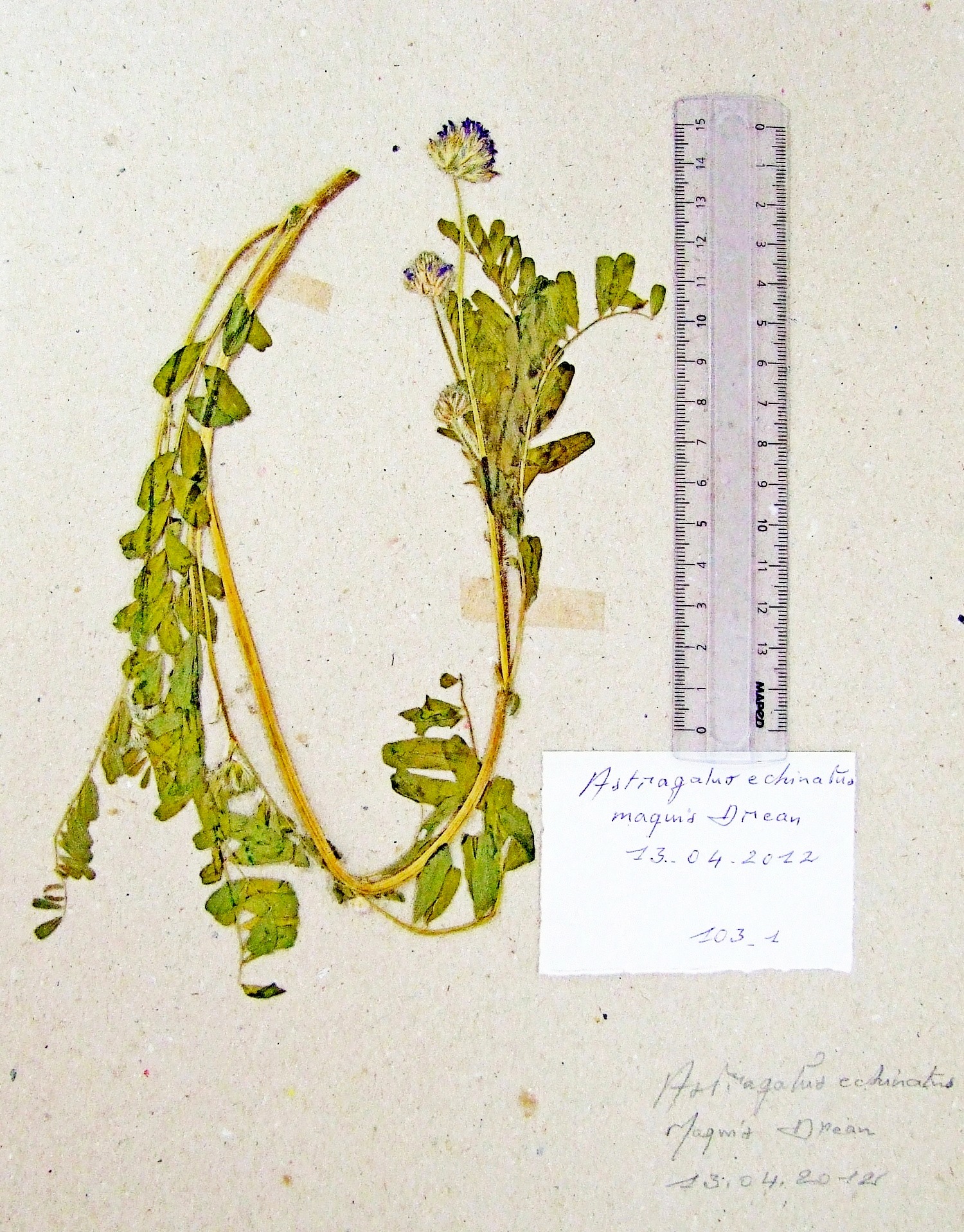| 110_16 | Leguminosae Astragalus echinatus Murr. | x=7.888056 y=36.292389 z=966 m | El Meriss Souk Ahras 2015-05-01 |  |