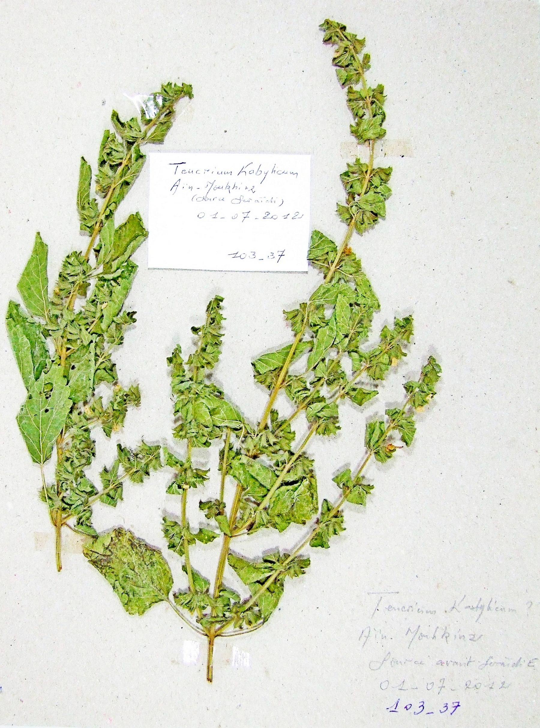 | 102_34 | Labiatae Teucrium resupinatum Desf. | x=8.169861 y=36.382472 z=984 m | Aïn Zana W Souk Ahras 2012-06-29 |  |