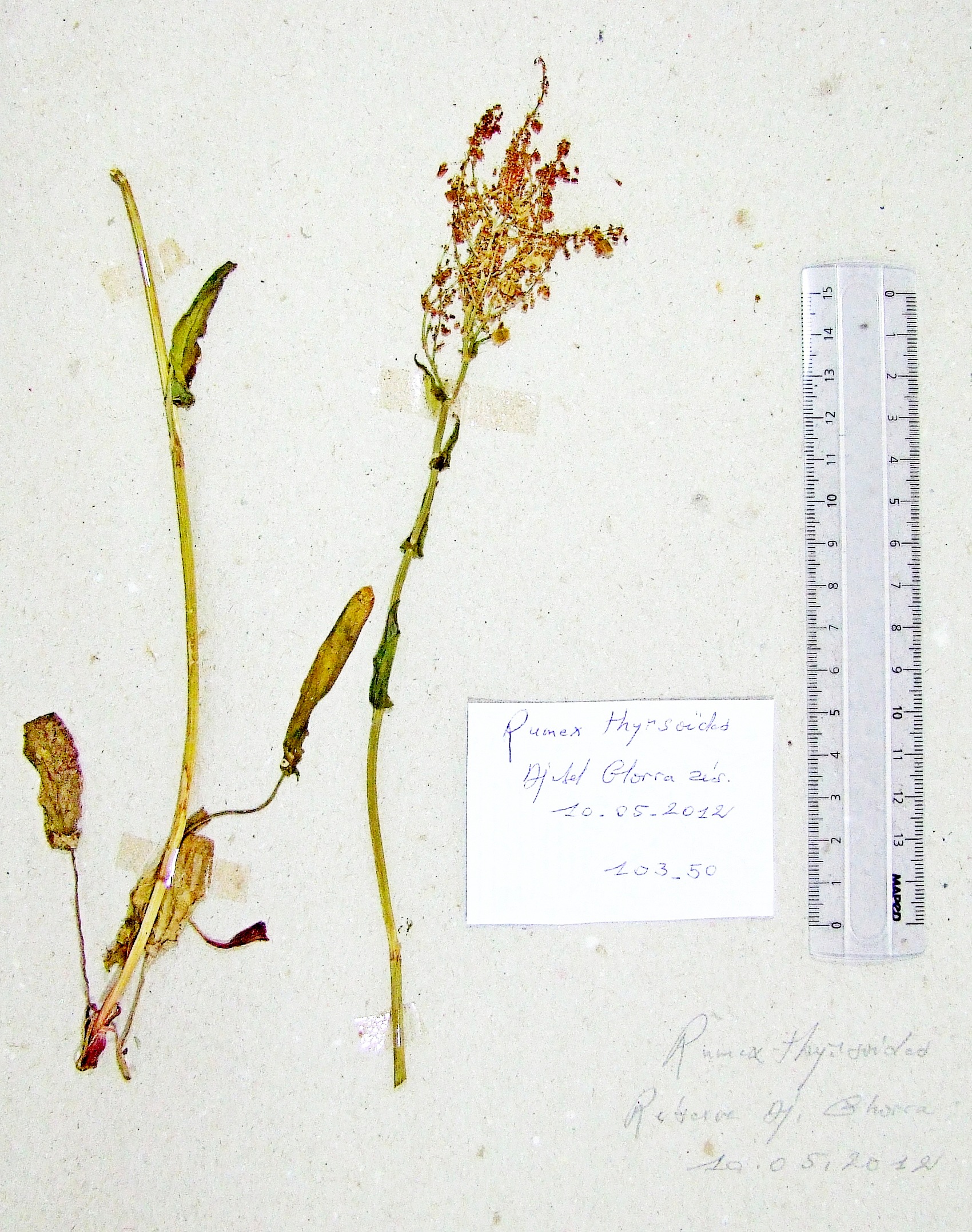 | 109_13 | Polygonaceae Rumex thyrsoïdes Desf. subsp. thyrsoïdes | x=7.966472 y=36.356944 z=1140 m | Ouled Driss (mare & prairie) Souk Ahras 2014-05-30 |  |
