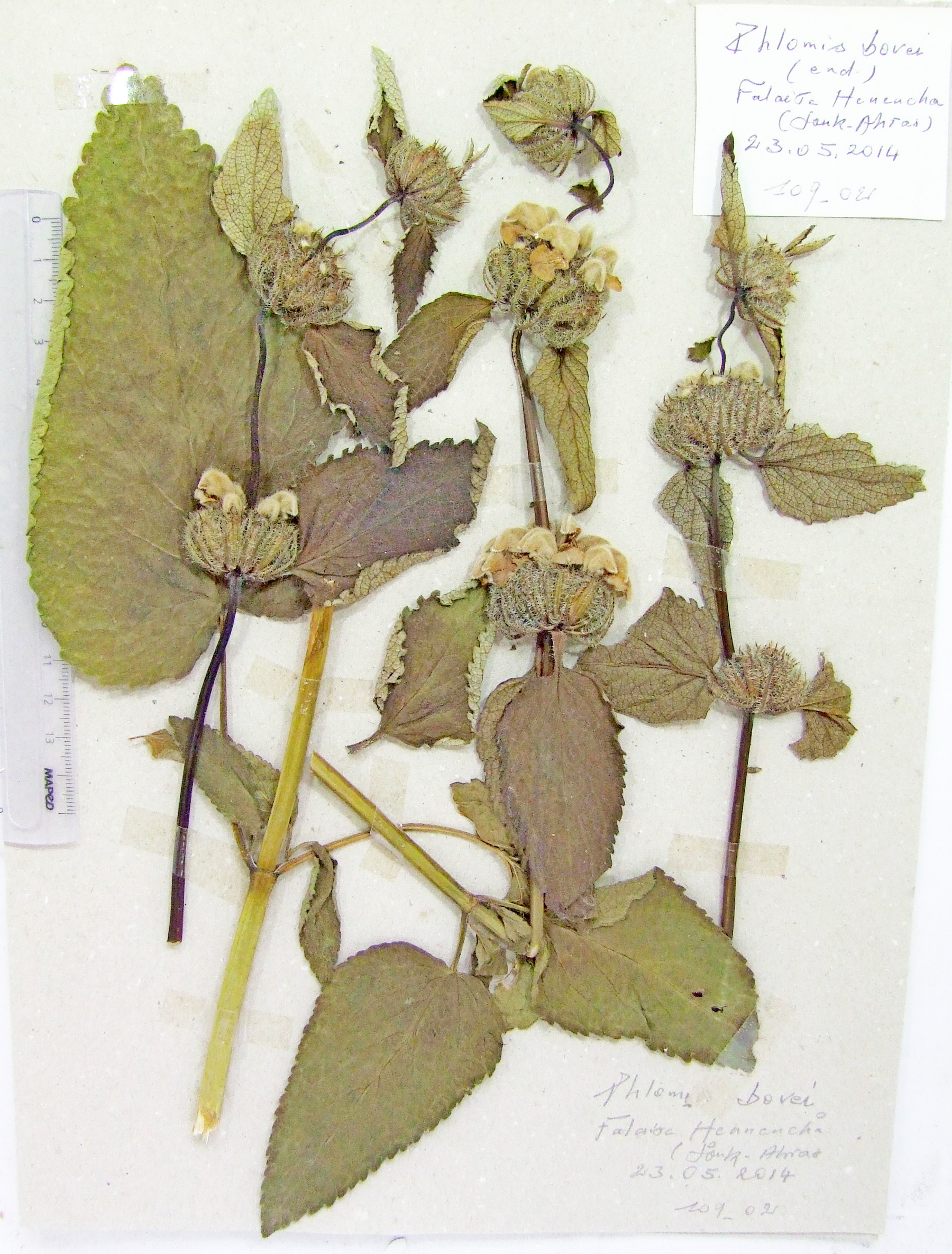 | 109_02 | Labiatae Phlomis bovei de Noé | x=7.791611 y=36.249972 z=716 m | falaise Khemissa Souk Ahras 2014-05-23 |  |
