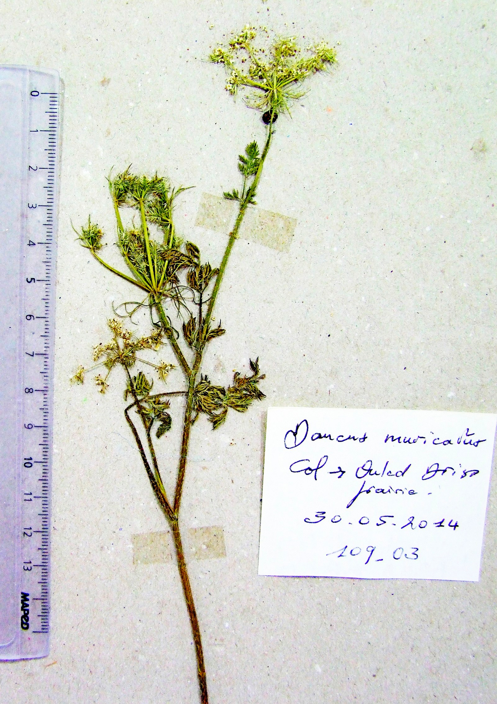 | 109_03 | Umbelliferae Daucus muricatus (L.) L. | x=7.946944 y=36.466028 z=1000 m | Ouled Driss (carrefour & pelouse:1000m) Souk Ahras 2014-05-30 |  |