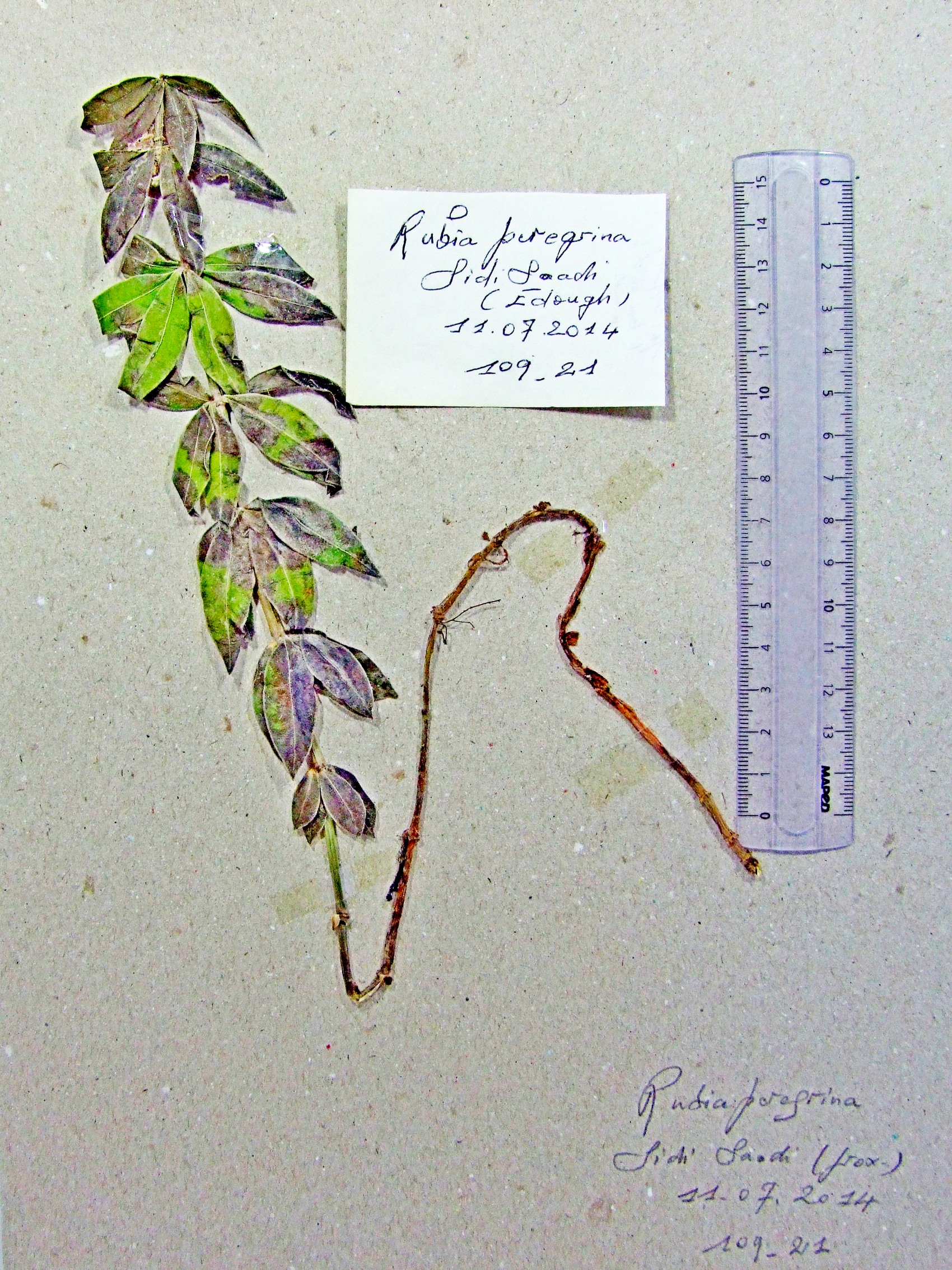 | 109_21 | Rubiaceae Rubia peregrina L. | x=7.604083 y=36.937556 z=400 m | djebel Edough 9 (new stat.Plat.bif.) Annaba 2014-07-11 |  |