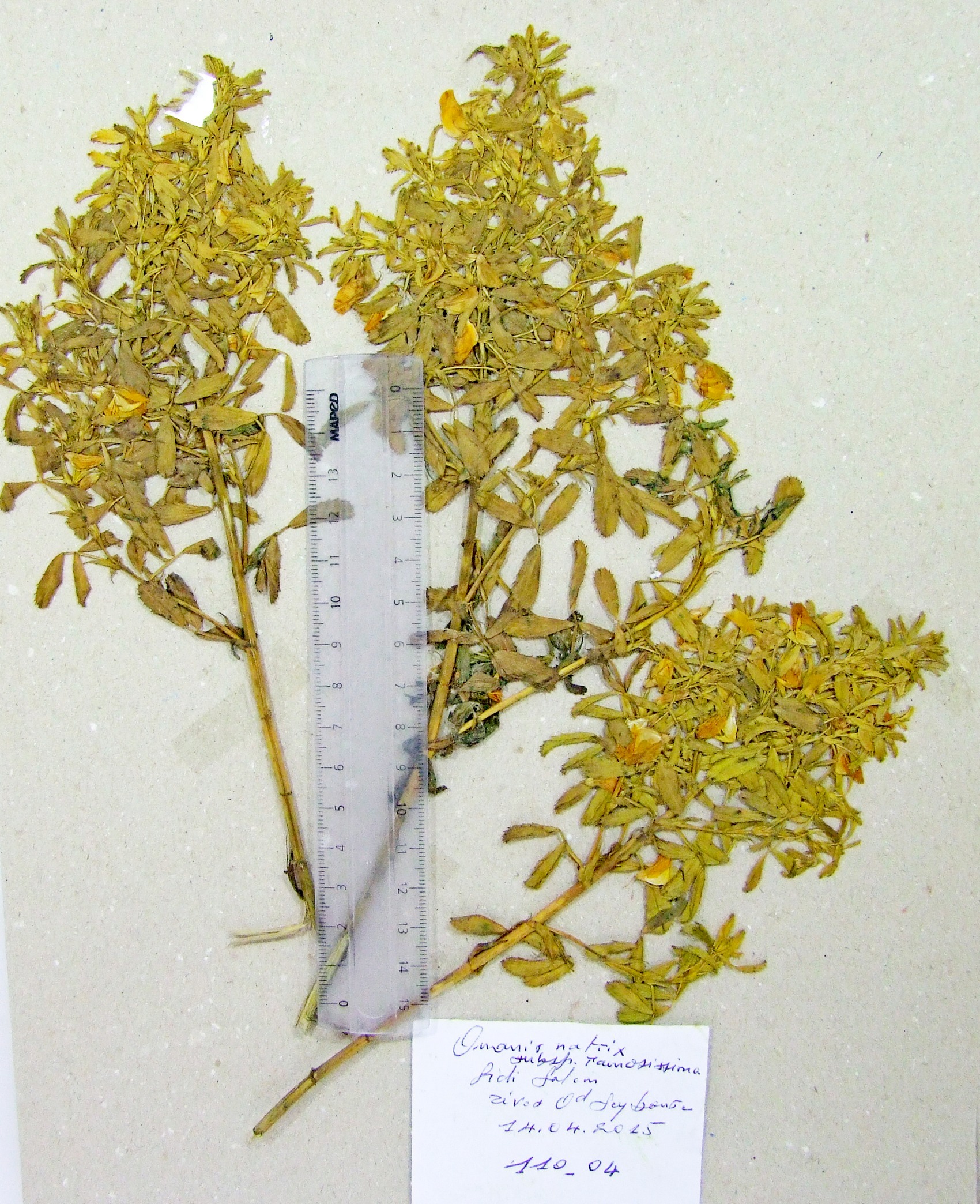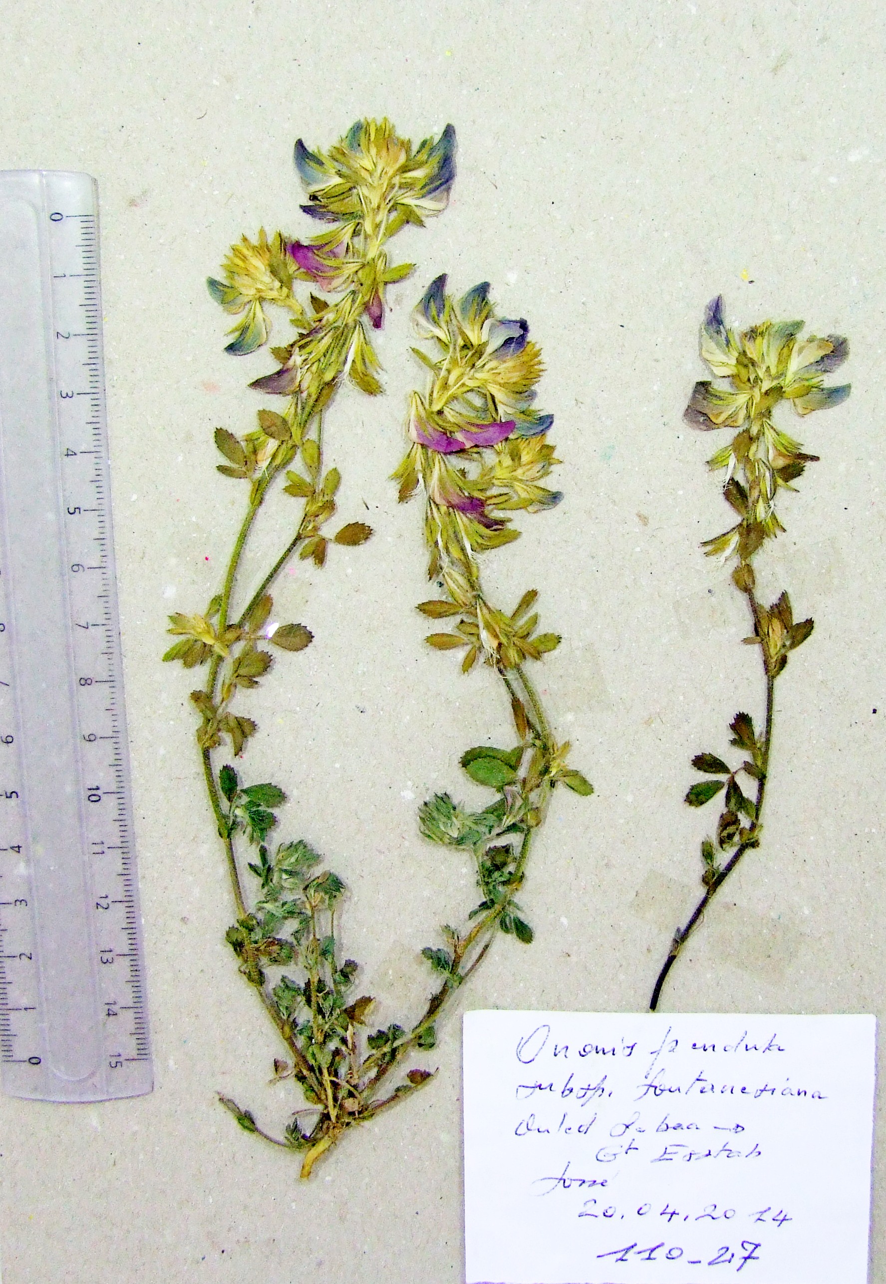 | 110_27 | Leguminosae Ononis pendula Desf. subsp. pendula | x=8.044583 y=36.837775 z=16 m | dunes Ouled Sebaa_w El Tarf 2015-04-20 |  |