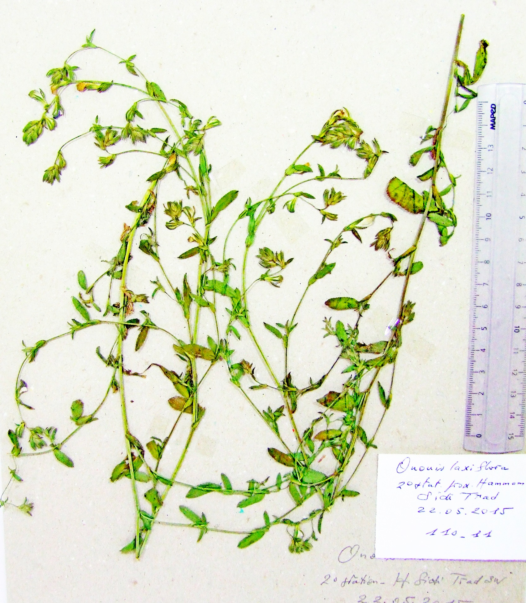 | 110_41 | Leguminosae Ononis ramosissima Desf. | x=8.662472 y=36.804981 z=428 m | vers oued Djenane (El Aïoun) El Tarf 2015-05-15 |  |