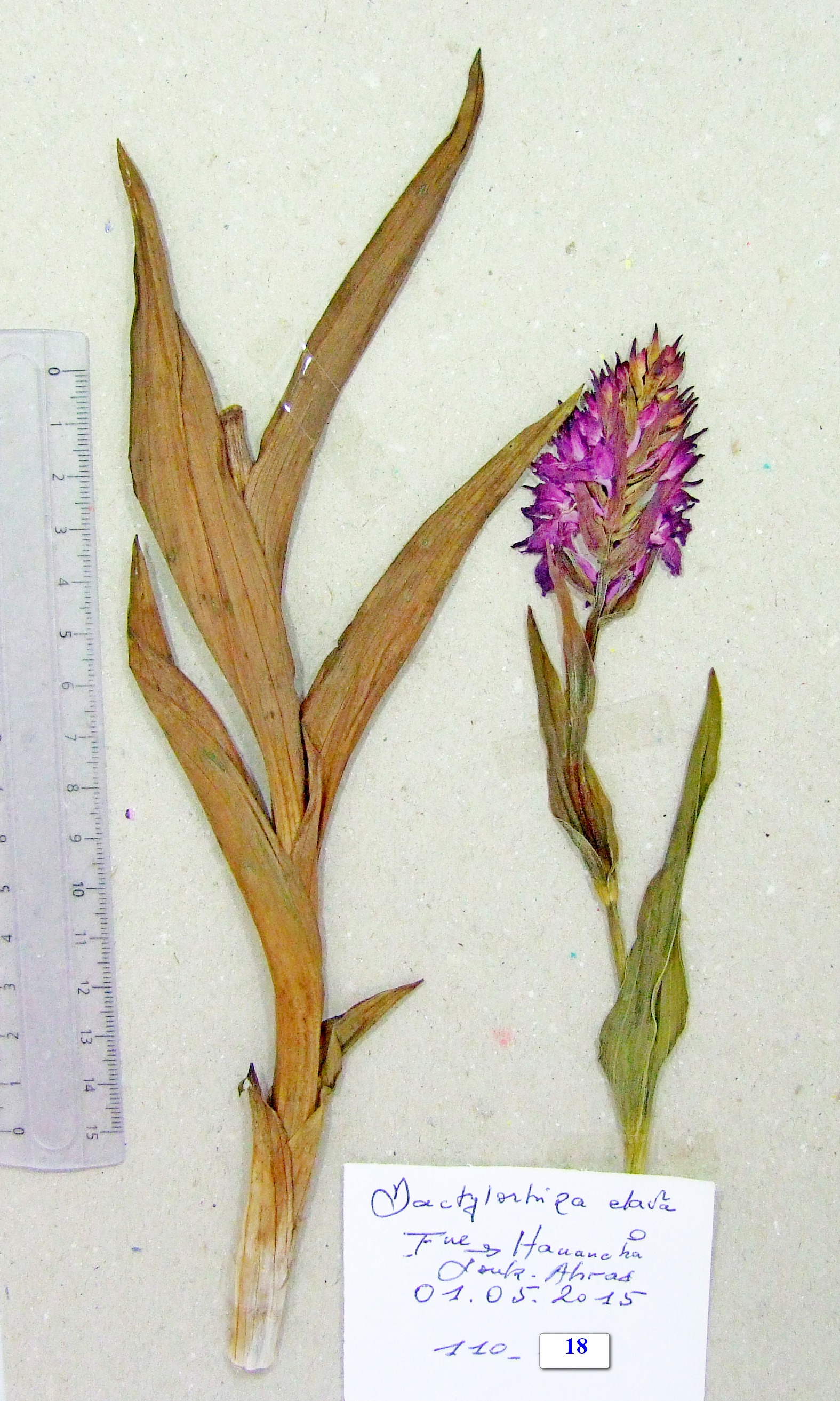 | 110_18 | Orchidaceae Dactylorhiza elata (Poir.) Soô subsp. sesquipedalis (Willdenow) Soô | x=7.833694 y=36.287389 z=923 m | Henencha (fontaines 1 & 2) Souk Ahras 2015-05-01 |  |