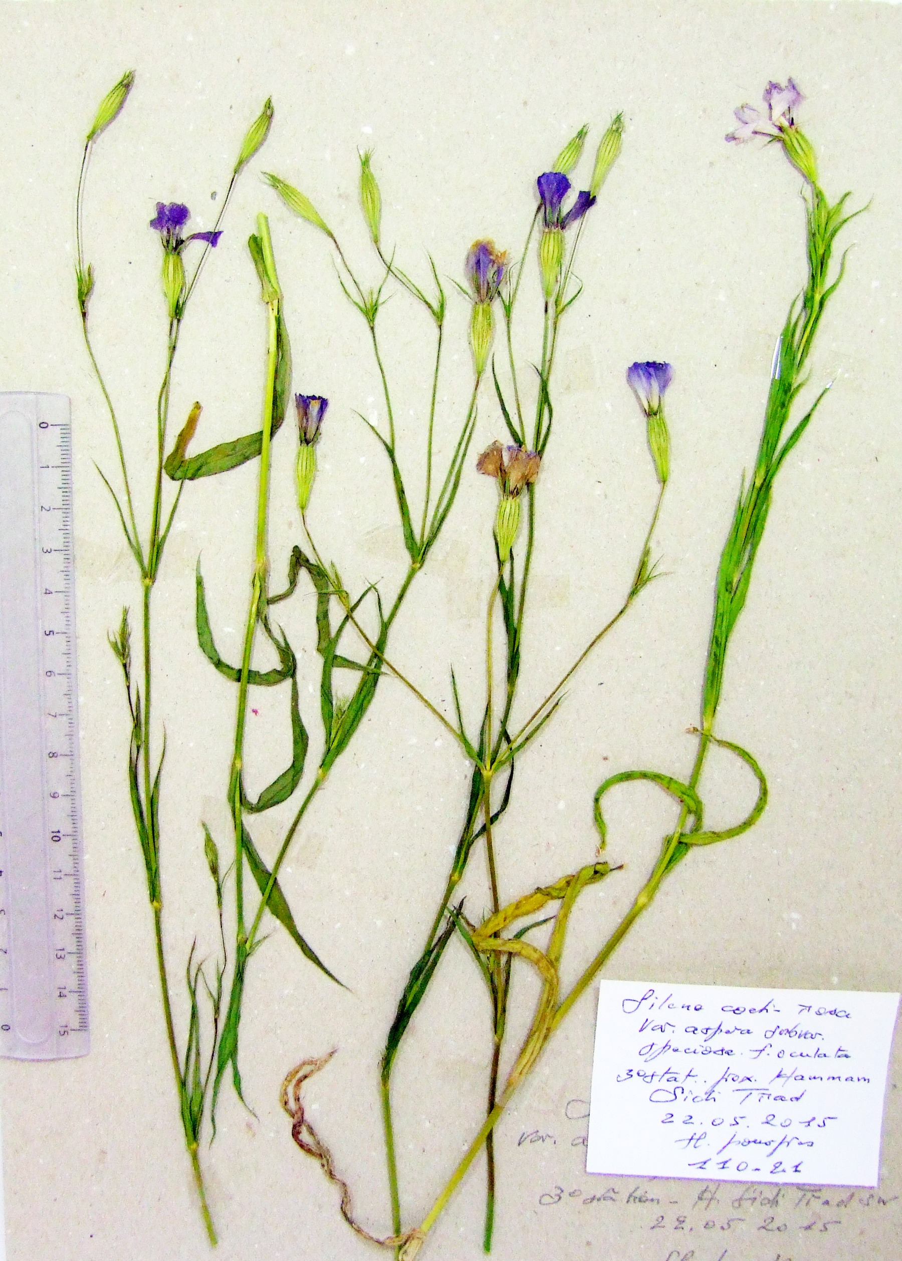 | 110_21 | Caryophyllaceae Silene coeli-rosa (L.) Godr. | x=8.2485 y=36.530444 z=647 m | Jnaina prox. Sidi Trad El Tarf 2015-05-22 |  |