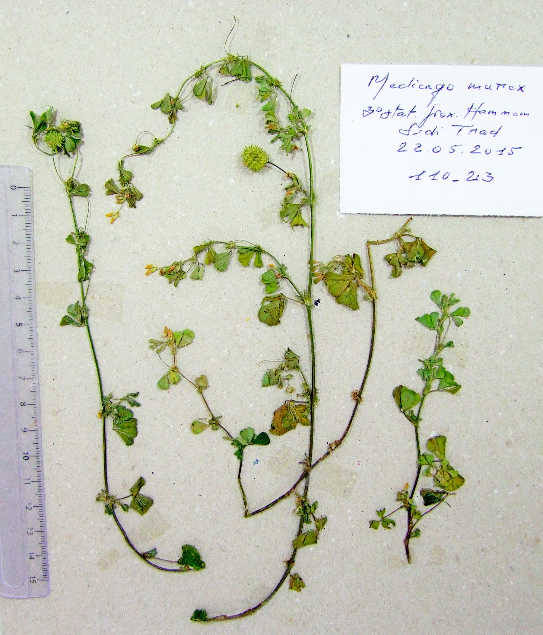 | 110_23 | Leguminosae Medicago murex Willd. | x=8.248472 y=36.56375 z=652 m | 3° station El Tarf 2015-05-22 |  |