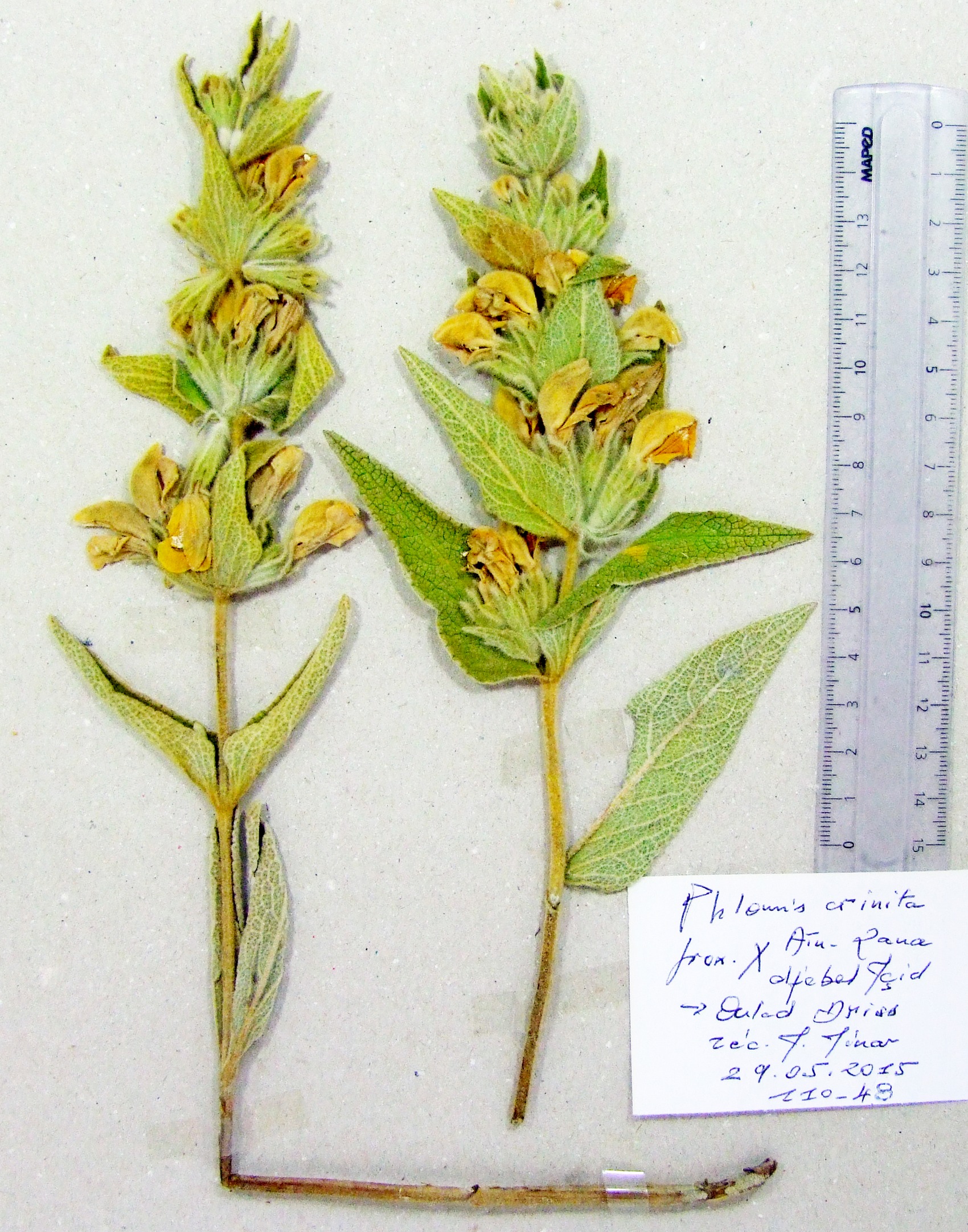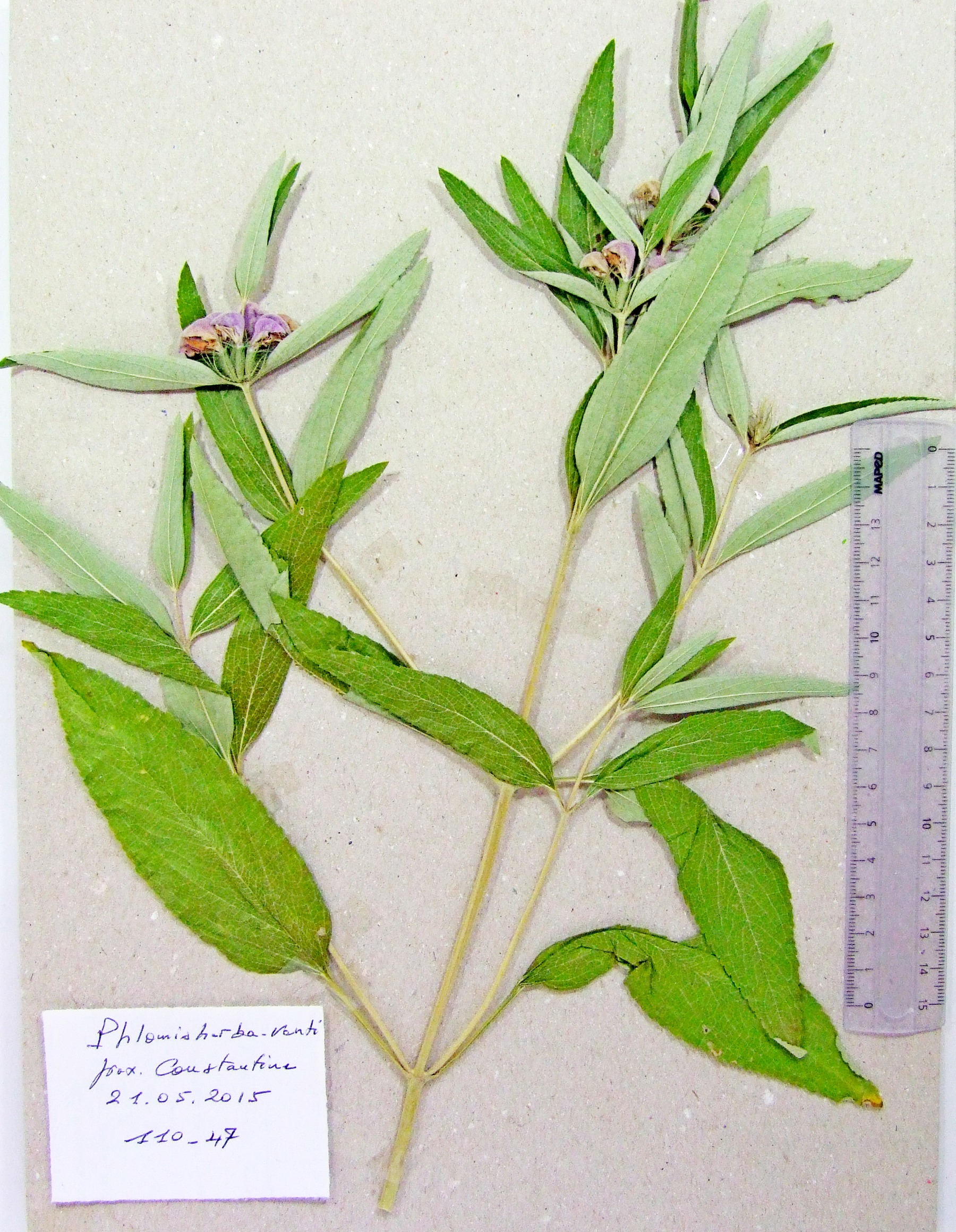 | 110_46 | Labiatae Phlomis bovei de Noé | x=8.097733 y=36.36885 z=895 m | Aïn Zana-)Ouled Driss Souk Ahras 2015-05-29 |  |