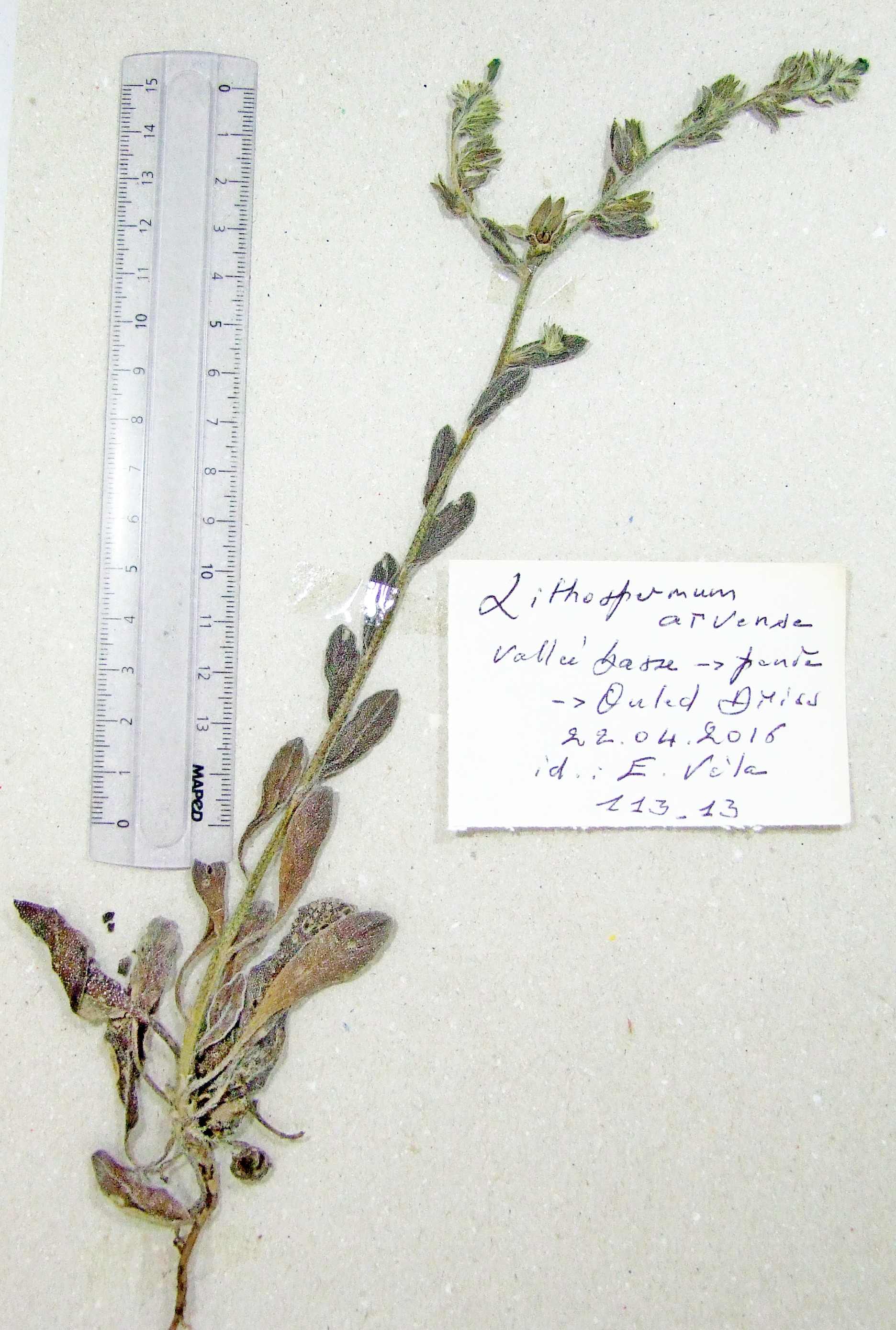 | 113_13 | Boraginaceae Lithospermum arvense L. | x=8.110278 y=36.375111 z=952 m | Ouled Driss vallée NE Souk Ahras 2016-04-22 |  |