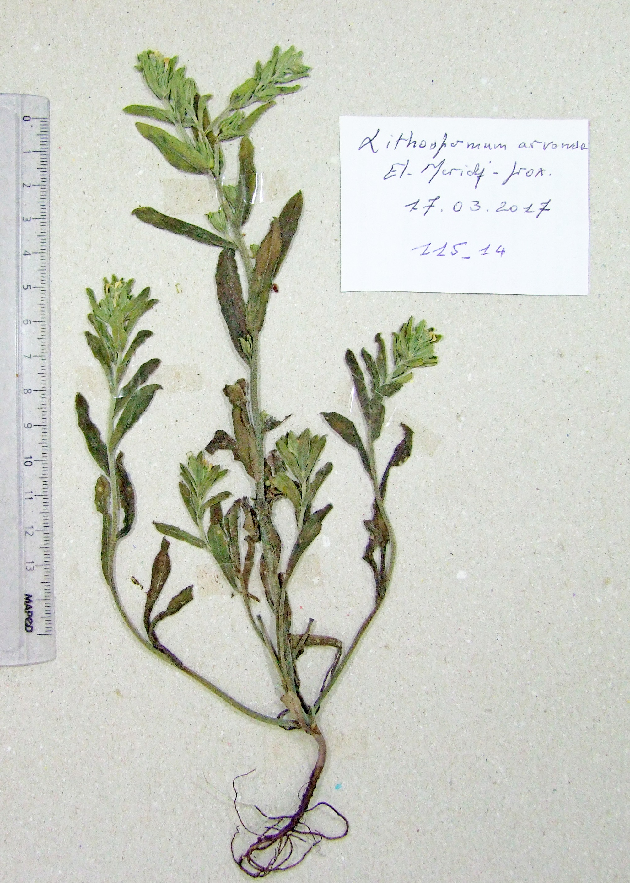 | 115_14 | Boraginaceae Lithospermum arvense L. | x=8.199614 y=35.793425 z=629 m | El Meridj (stations) Tébessa 2017-03-17 |  |
