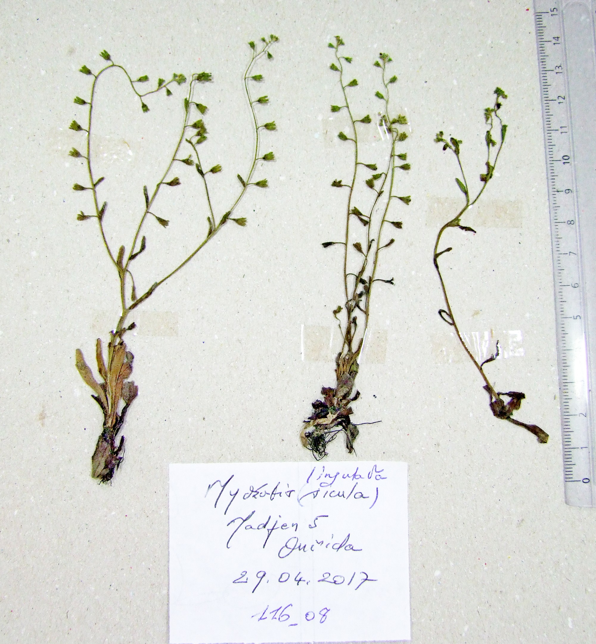 | 116_08 | Boraginaceae Myosotis laxa Lehm. subsp. caespitosa | x=7.896125 y=36.451778 z=567 m | Madjen Ourida et stat.prox. Guelma 2017-04-29 |  |