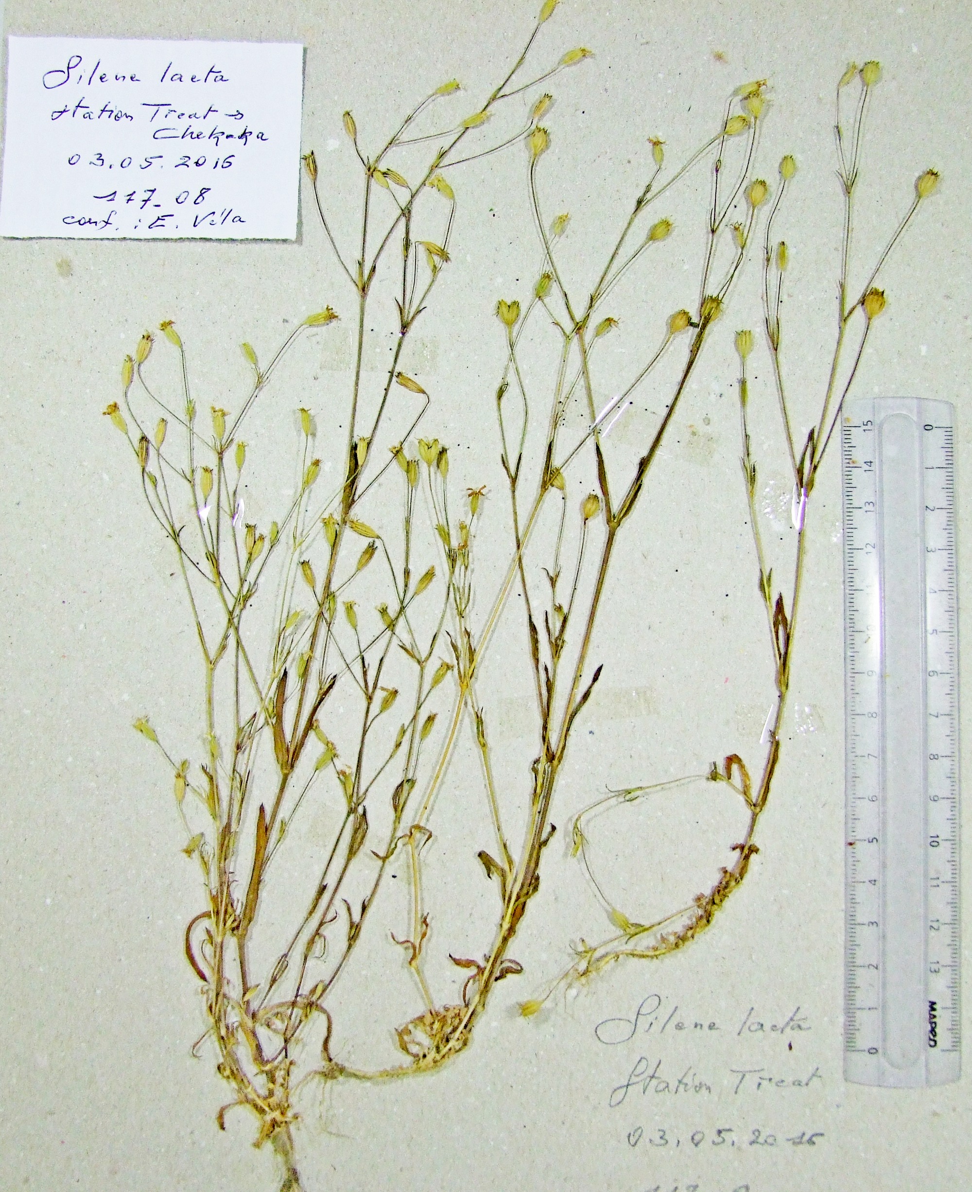 | 117_08 | Caryophyllaceae Silene laeta (Aiton) A. Br. | x=7.372667 y=36.910194 z=30 m | Ben Salem Miloud: Urg. antheric. Annaba 2016-05-03 |  |