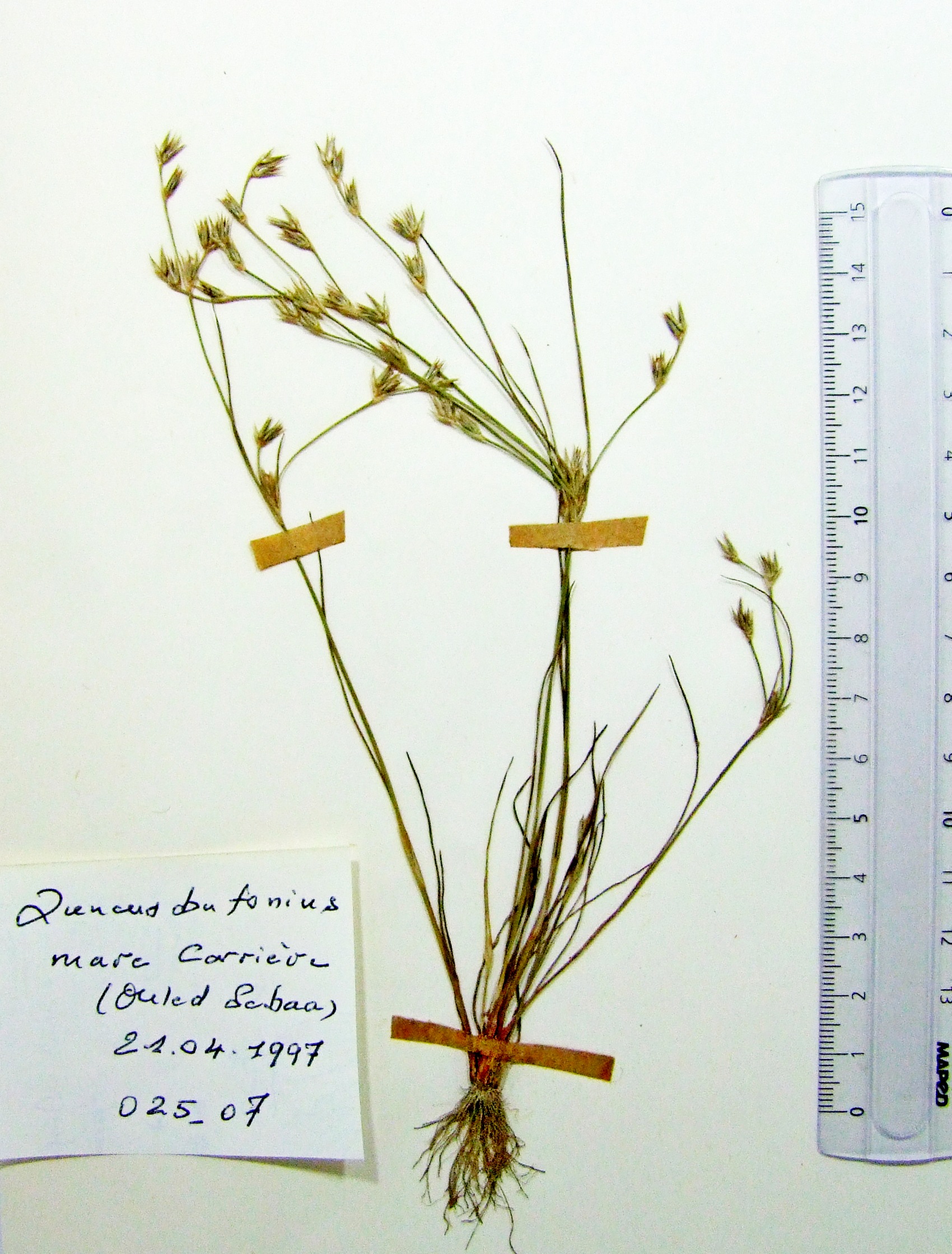 | 050_13 | Juncaceae Juncus bufonius L. subsp. bufonius | x=8.393944 y=36.869222 z=35 m | Demt errihan El Tarf 1989-04-18 |  |